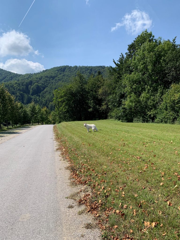 Takoj ko smo dobili pozitivne vibracije, smo se odpravili naprej po cesti do Doma na Travni gori. Midva sva pot kar skrajšala in nisva ves čas hodila po cesti, ampak raje po gozdni poti. Pot nekaj časa vodi v hrib, tako da je malo bolj naporno kot po cesti, vendar se splača. Vmes dvakrat prečkaš cesto in eno podrto drevo, tako da ti ni dolgčas.
