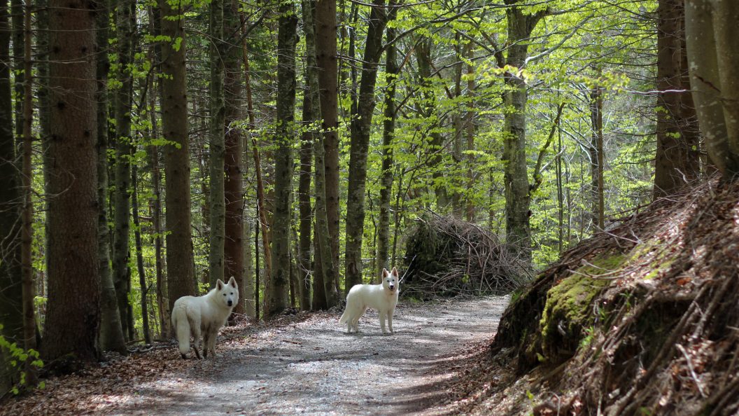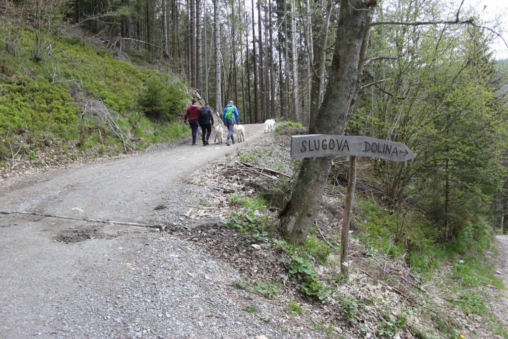 Do samega vrha in nazaj do koče, smo rabili 35-40 min. Kosmatinčki so zelo uživali ter veselo tekali. Ob srečanju s pohodniki (ki jih ob tej jutranji uri še ni bilo veliko), smo jih seveda privezali.