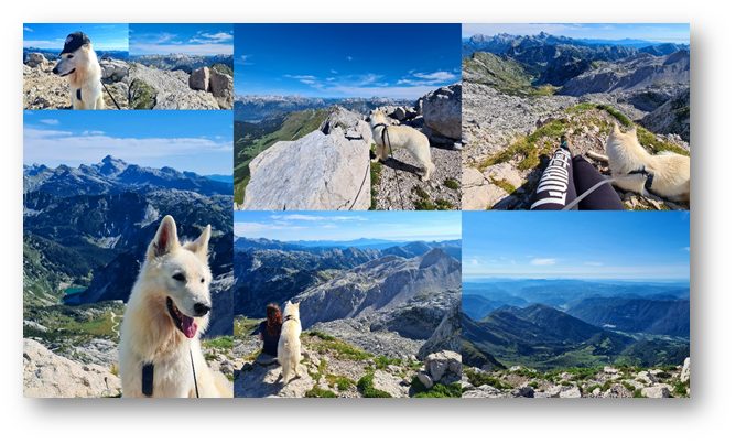 • Prvo in najbolj pomembno je to, da ste primerno obuti, da je vaš pes, velik ali majhen (samo prosim, ne mladič in ne star, ker je prehuda) vajen hribov, da ne skače za kravami na planini, in ovcami, ki se včasih znajdejo na vrhu (povodec!), ter da imata oba dovolj kondicije.