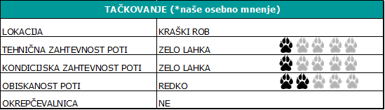 Pot se skozi gozd nekaj časa rahlo vzpenja, kasneje pa pridemo na ravnino Kraškega roba.