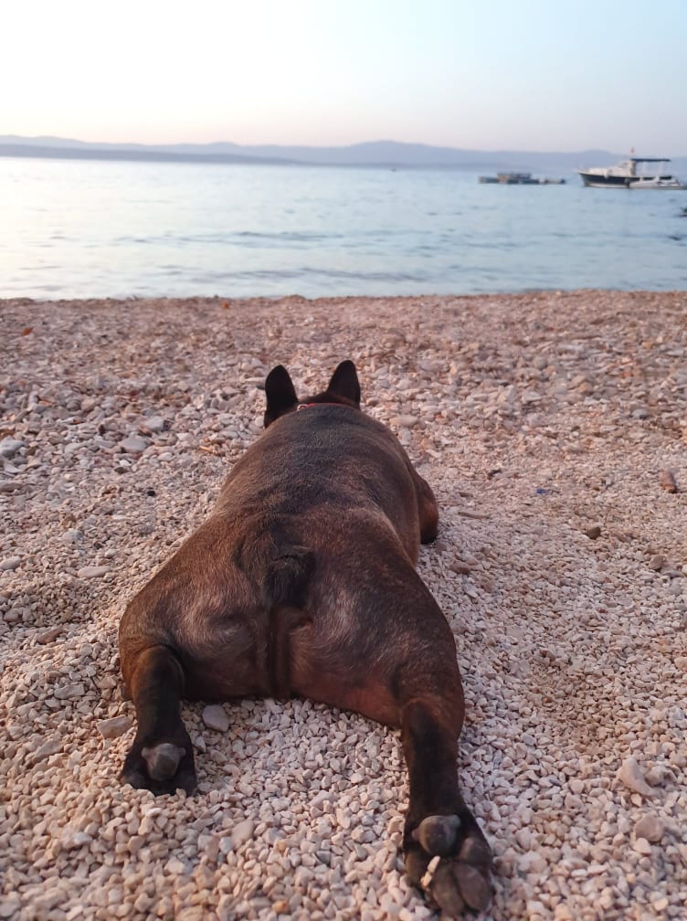 Plaža je psom zelo všeč 😄 Naš Sharki kraljevo uživa in tukaj res nobenega ne moti.