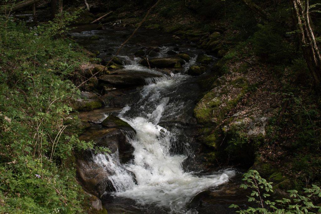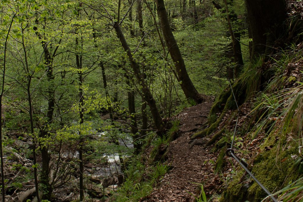 Izbrali smo si pot, ki vodi v hrib, po kateri nadaljujemo še dobrih 500 metrov. Spustimo se na nekoliko strmo pot na desni, ki nas vodi nekoliko nazaj, proti slapu.