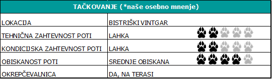 Bistriški vintgar se z lahkoto kosa z Blejskim vintgarjem. Na poti smo srečali tako družine in starejše, kot tudi pse različnih velikosti. Čista in mirna pot ob deroči reki, je odlična za fotografiranje.