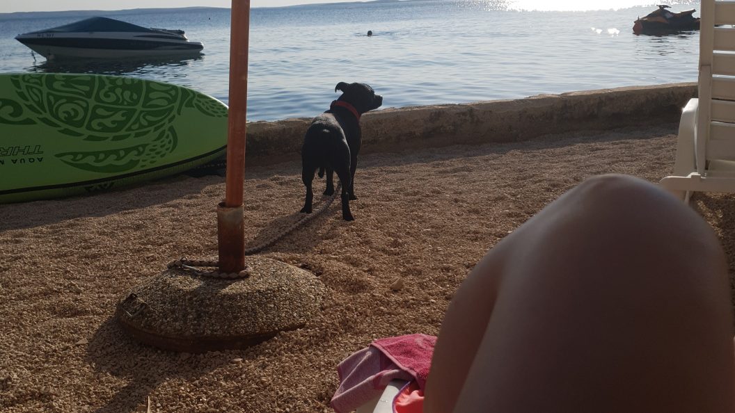 Prvotna izbira so bile Selce zraven Crikvenice. Na srečo sva to misel opustila. Selce imajo 1m, pazi, en meter pasje plaže z ogromnimi skalami. Kako gre pes v vodo in iz nje mi ni jasno. Na plažah so psi nezaželjeni, seveda se tudi kopati ne smejo.
