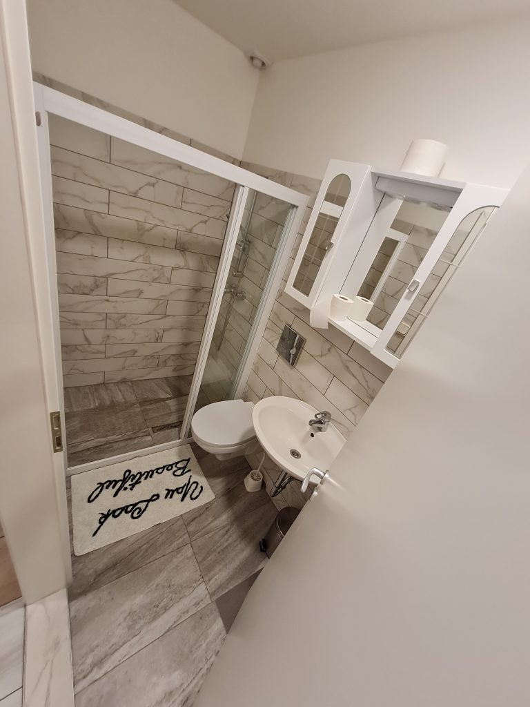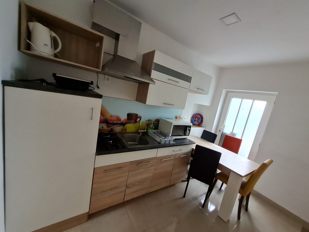 Apartma v pritličju je velik 85 , ima 2 kopalnici, 2 spalnici, kuhinjo, dnevno sobo in ograjeno teraso. Primeren je za bivanje 5 odraslih, vendar število oseb ni pogoj (s partnerjem sva bila v apartmaju sama s psom). Vsi prostori so dobro opremljeni (hladilnik, opekač, grelnik vode, kuhalna plošča, televizija, klimatska naprava, pralni stroj …).