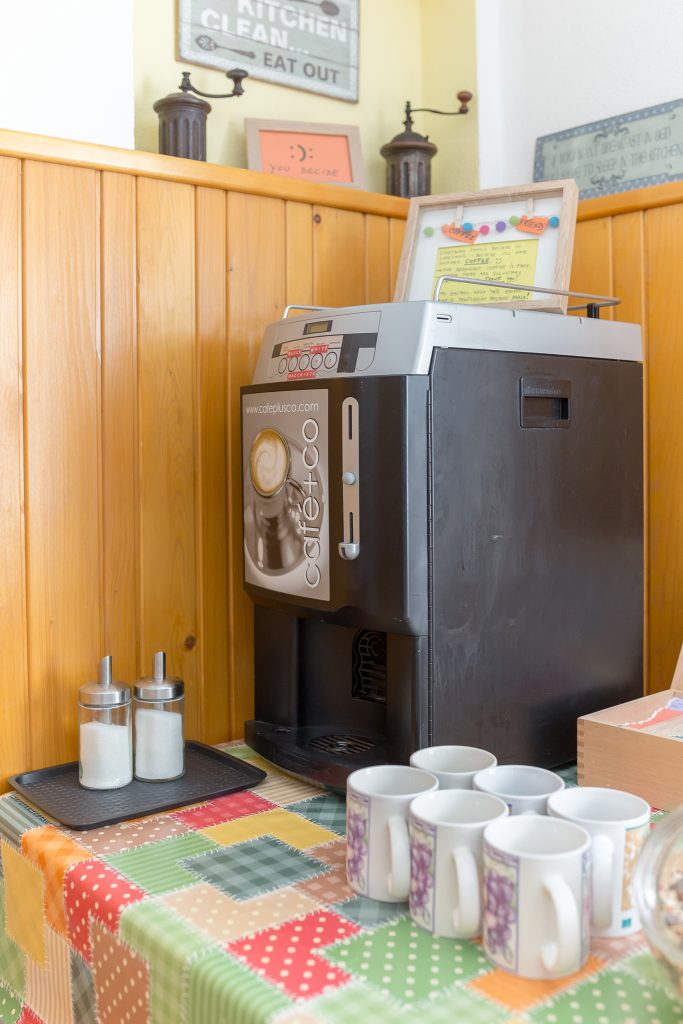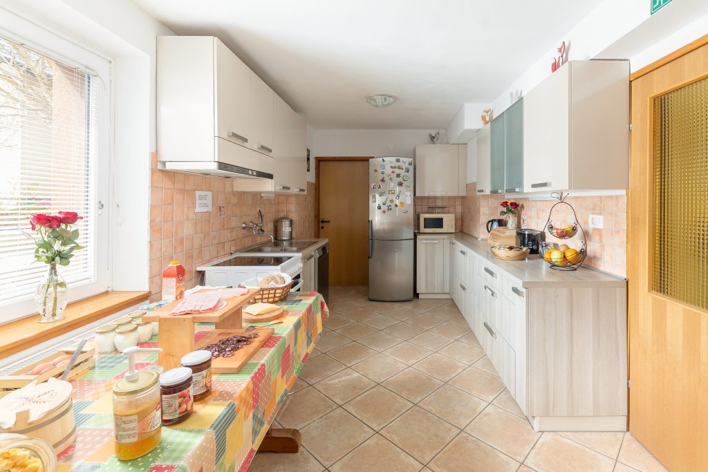 Nudijo vam prostorsko bogato opremljeno kuhinjo, v kateri so vam vedno na voljo osnovne prehranske sestavine. V bivalnem delu je kotiček za počitek (TV, knjižnica) in jedilni prostor, kjer je v ponudbo vključen zajtrk.