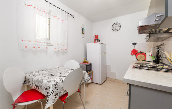 Studio apartma je klimatiziran in primeren za 3-4 osebe, ima eno spalnico, eno kopalnico, v dnevni sobi je raztegljiv kavč, imate pa tudi verando s pogledom na vrt. Oprema: mikrovalovna pečica, zunanji žar, opekač kruha grelnik vode, filter kavni aparat in pomivalni stroj, TV z ravnim zaslonom, vključena sta tudi posteljnina in brisače. Pralni stroj lahko po dogovoru brezplačno uporabljate v garaži.