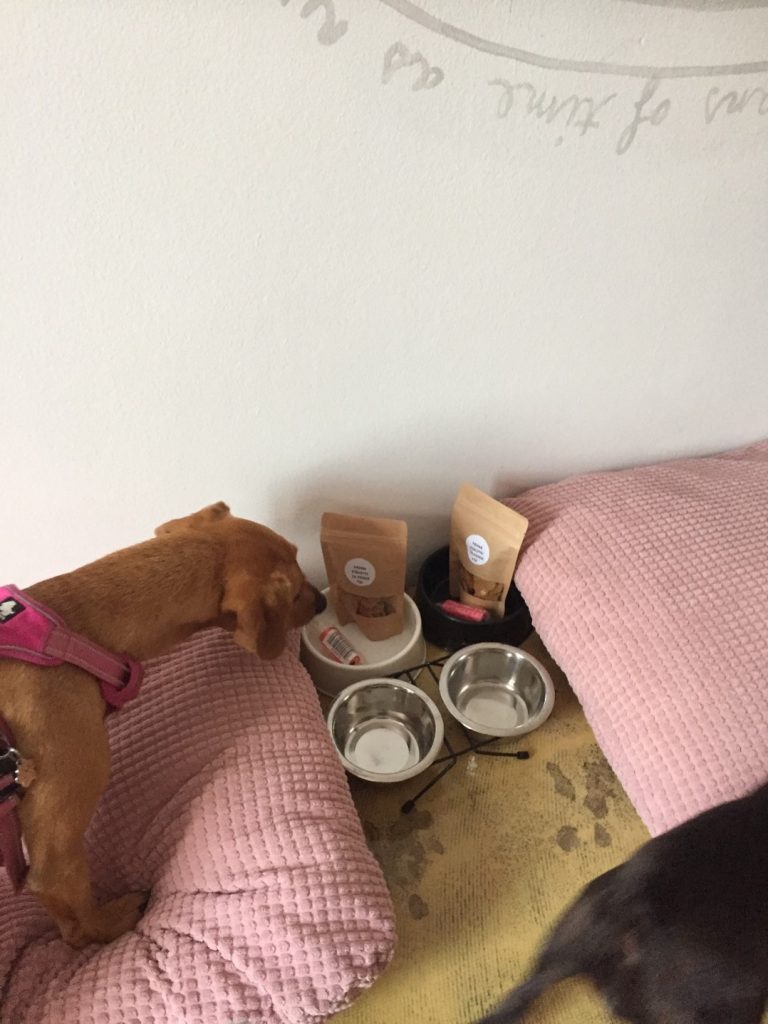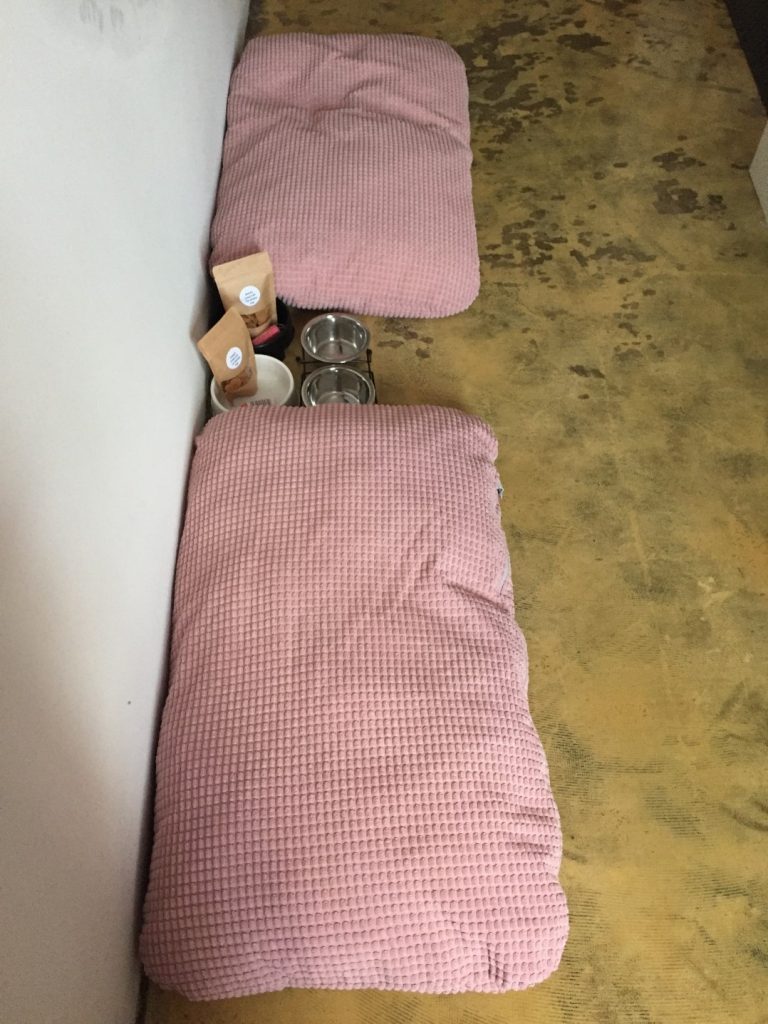 Ko smo prispeli v hotel, smo se javili na recepciji, kjer so nas zelo prijazno sprejeli in v sobi nas je čakalo presenečenje za kužke : za vsako postelja, priboljški, posodice za hrano in vodo ter vrečke -drečke.