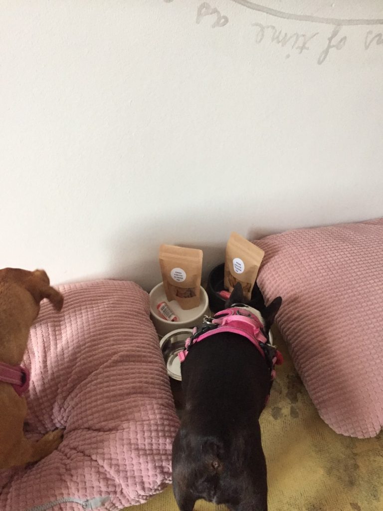 V jedilnico kužki ne smejo, sta pridno počakali v sobi 😊. Nudijo samopostrežni zajtrk, ki vam ponuja od šampanjca do sveže stisnjenega soka pomaranče in hrane na izbiro od domačih jogurtov, do mesnatih izdelkov in toplih jedi.