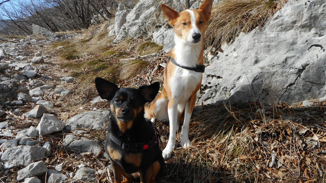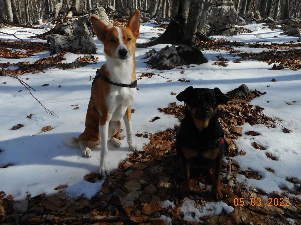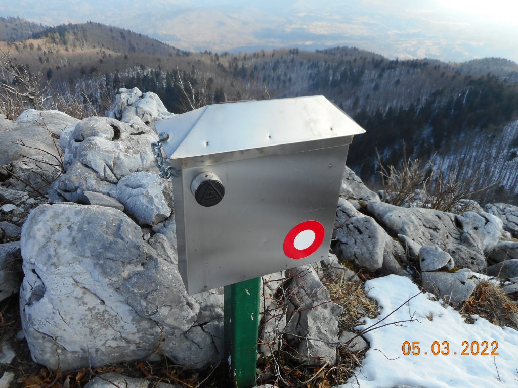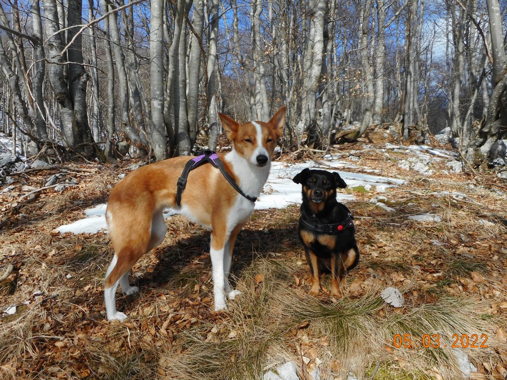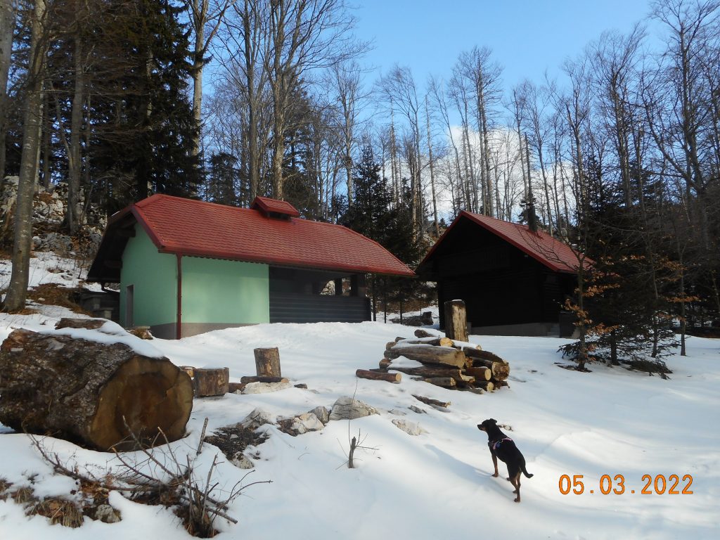 Tik pred vrhom smo opazile tudi bivak. Na vrhu pa je bilo zelo mrzlo, saj je močno pihalo (močna burja). Ponavadi Gajo in Kano slikam na vrhu – cilju, tokrat pa to ni bilo mogoče, saj je tudi njiju, tako kot mene, močno zeblo. Tako sem se odločila, da se na vrhu ne bomo zadrževale. Vzela sem samo žig in smo takoj odšle nazaj dol. Tako so njune slike nastale, ko smo se vračale do avta. Moram pa priznati, da je pot drugače zelo lepa in tudi ni strma – vzponi so zmerni.