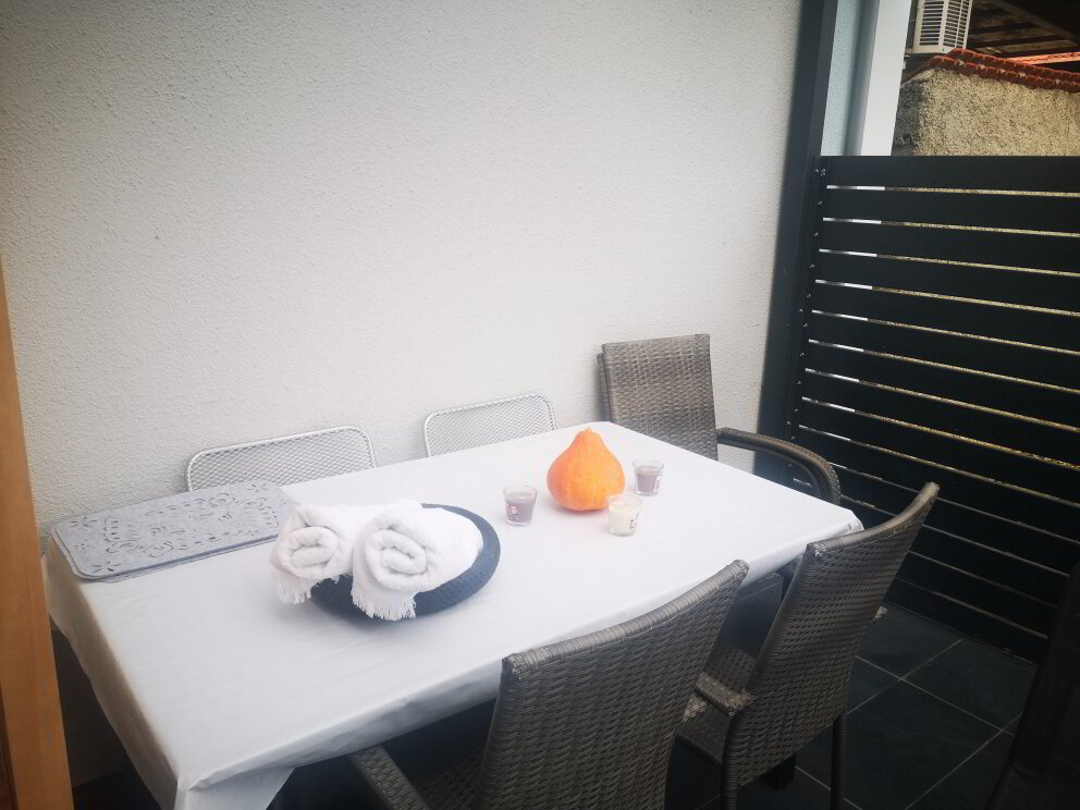 Skozi bivalni prostor pridete na pokrito, zelo lepo urejeno teraso z udobno vrtno garnituro in žarom za peko. V hiši so domači ljubljenčki zaželjeni.
