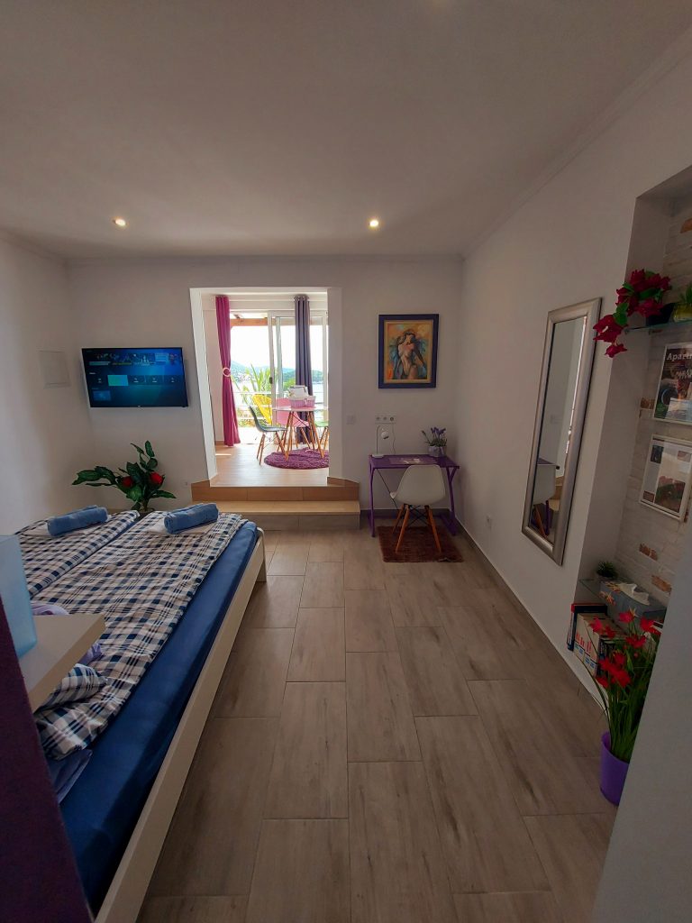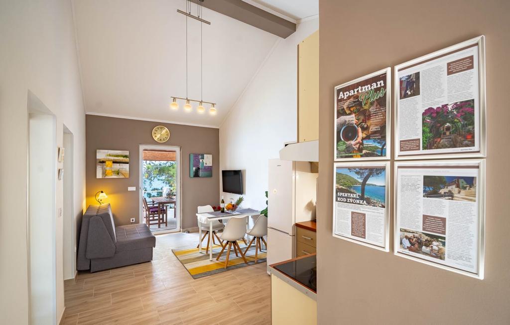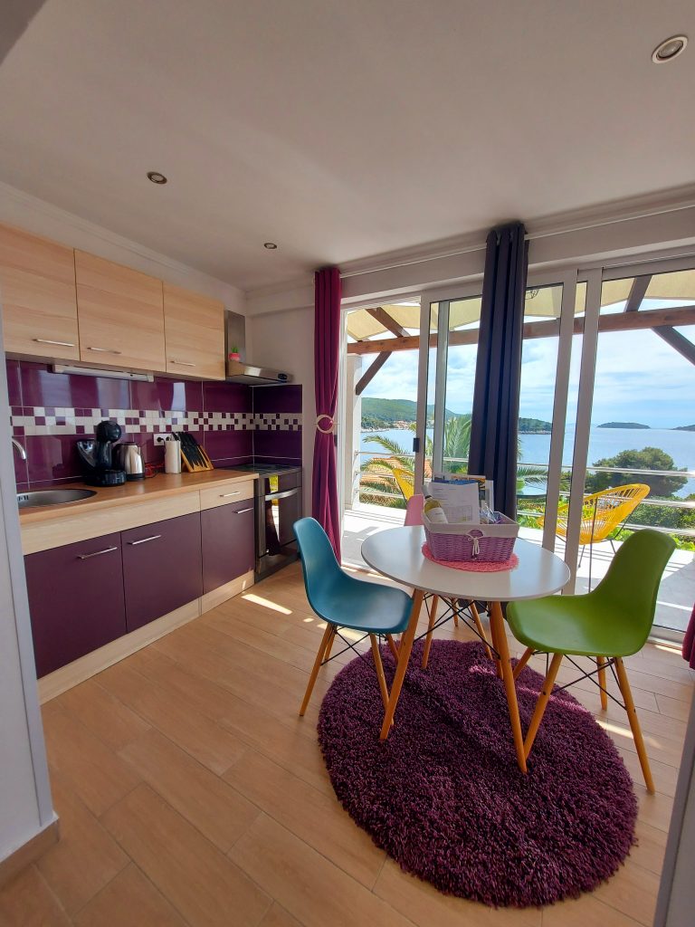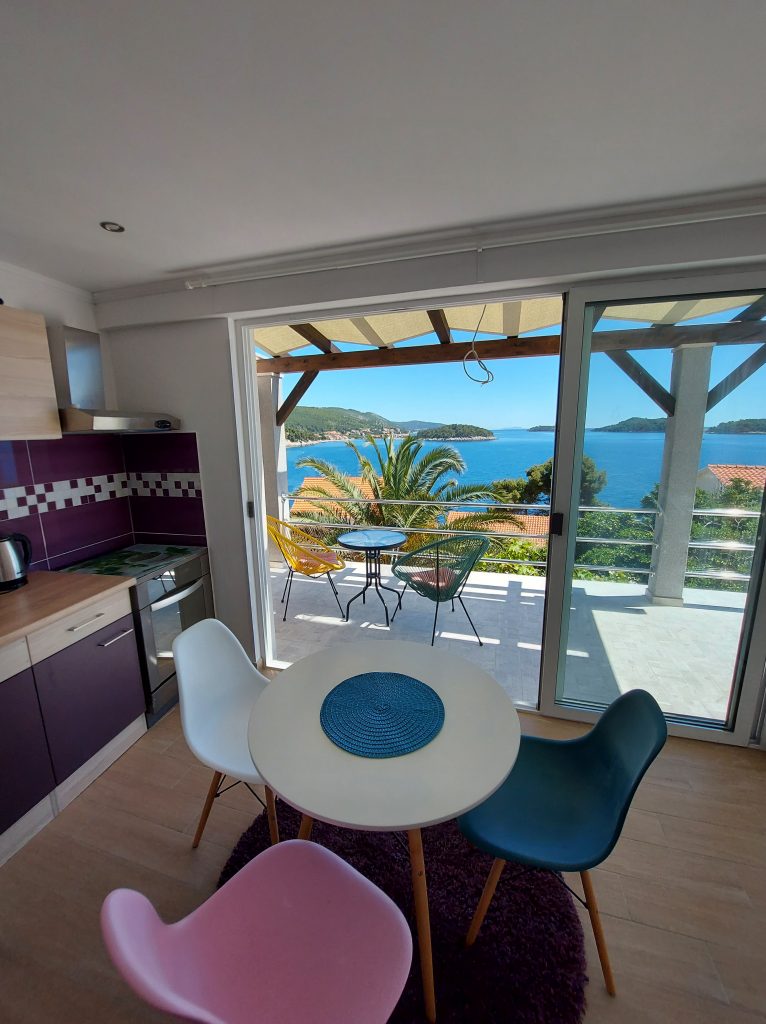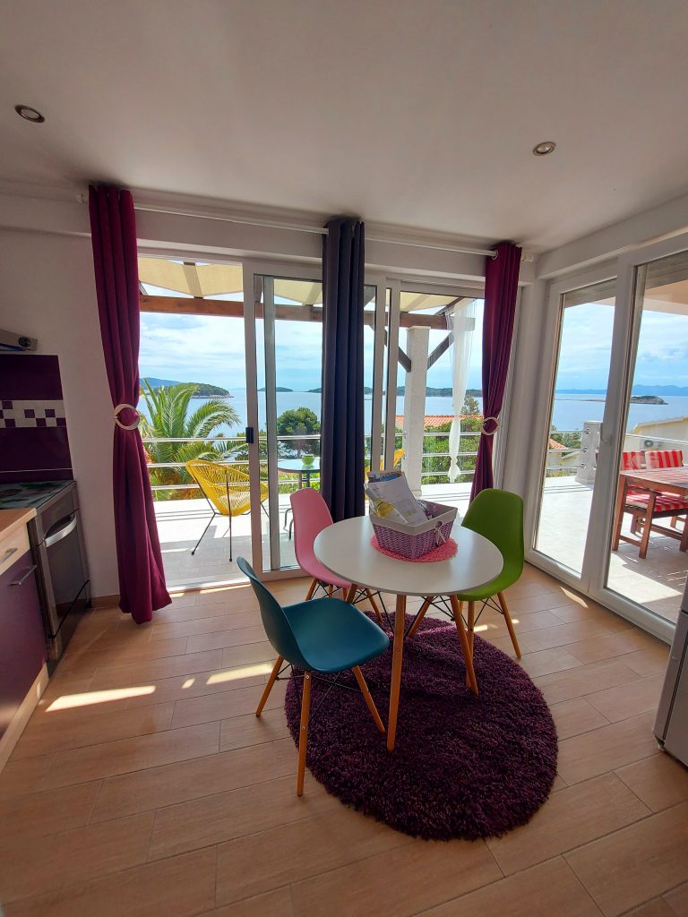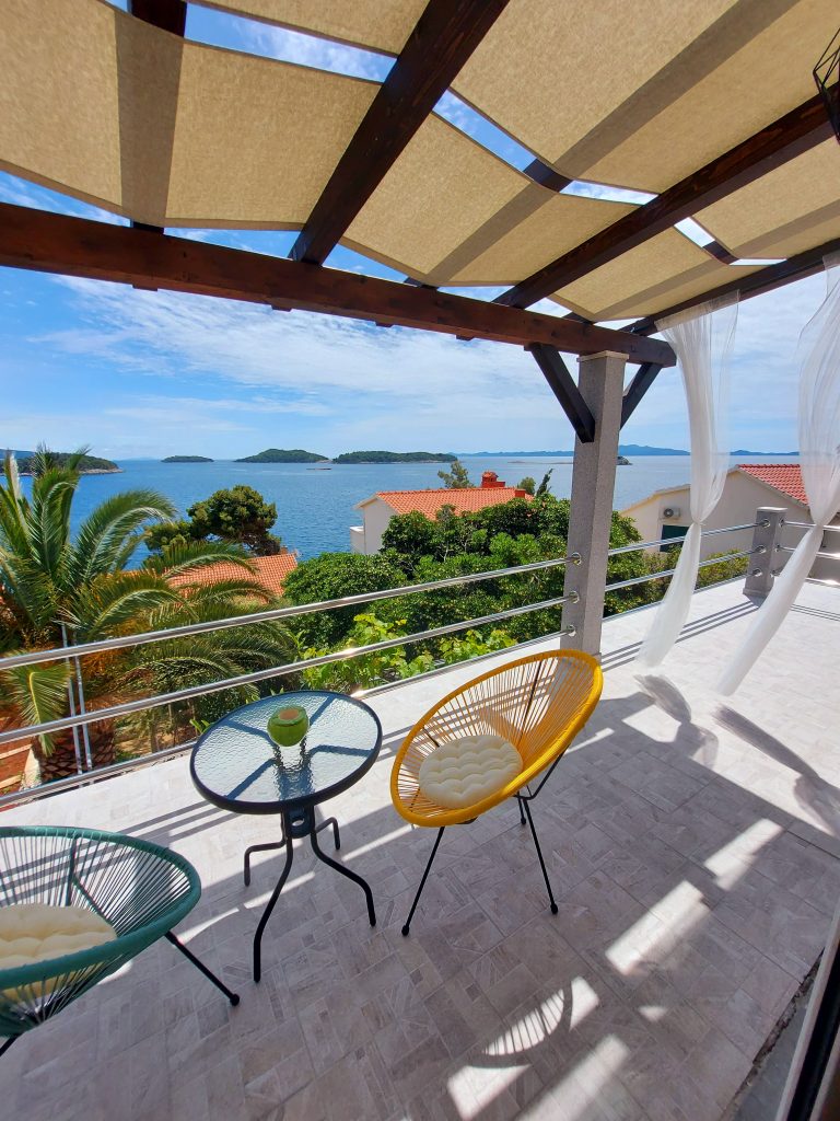 Apartmaji Rotim na otoku Korčula, se nahajajo v prvi vrsti od morja čisto na samem, saj tudi zgoraj nad apartmaji ni hiš. V hiši je studio apartma za 3 osebe, studio apartma za 2 osebi in apartma za 4 + 1 osebo. Vsi apartmaji so prijazni hišnim ljubljenčkom in so zelo dobrodošli. Imajo celo privat plažo. Gostom so na voljo leseni ležalniki, ležalniki s premerom 2 metra, SUP deske, kamin, zunanje terase, miza za namizni tenis, parkirišče je zagotovljeno ter možnost priveza čolna.
