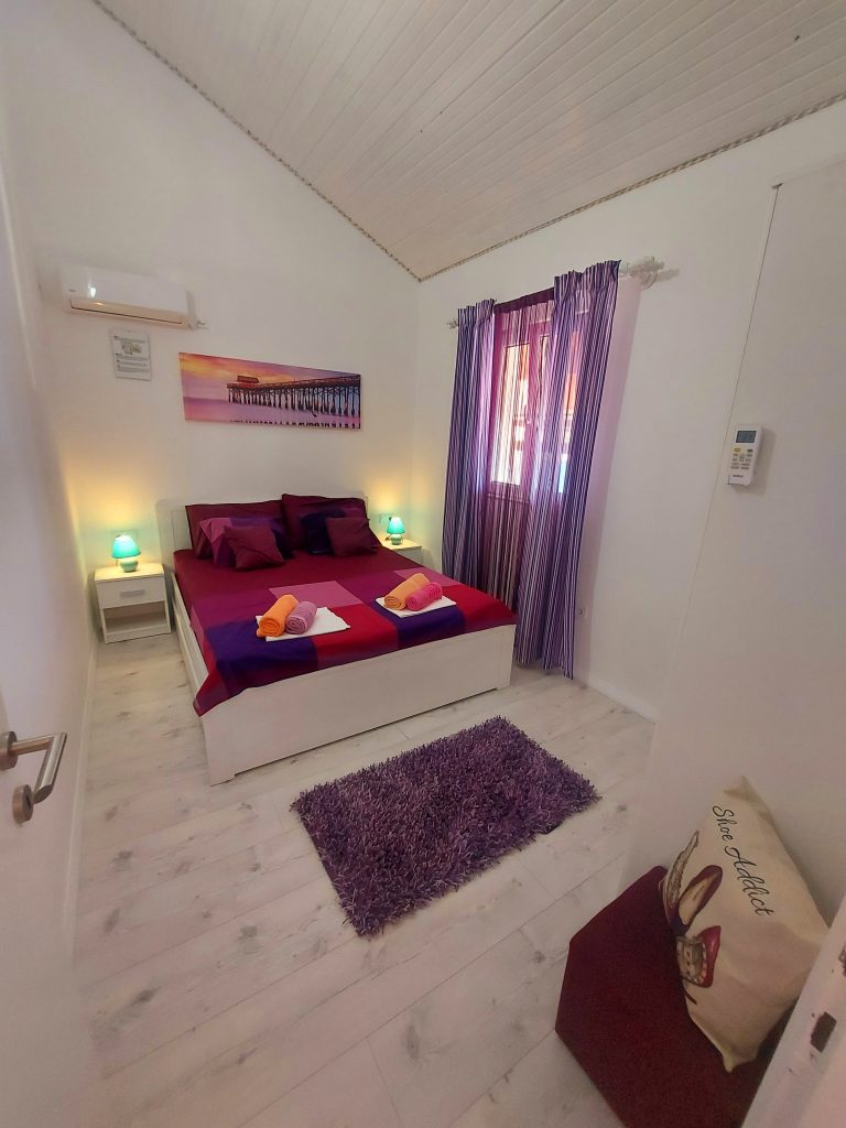 Nahaja se 10 metrov od plaže. Sestavljen je iz 2 spalnic (160 x 200 ležišč), kuhinje z jedilnico, kopalnice, ena manjša terasa in čudovite velike pokrite terase s pogledom na morje. Na terasi je velika jedilna miza, kavč, gugalnica za dva in gugalnica za eno osebo.