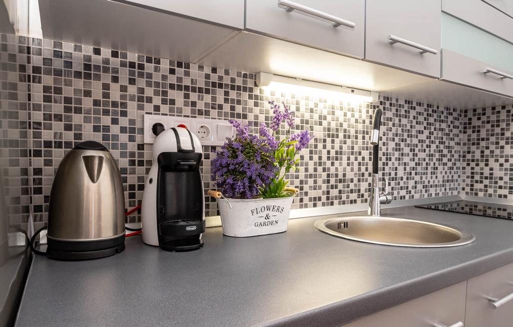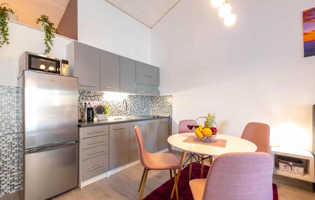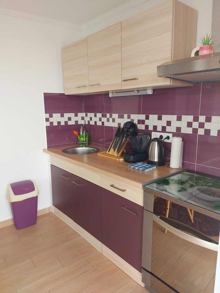 Kuhinja: velik hladilnik z zamrzovalnikom, kuhalnik vode, kavni avtomat, kavni avtomat Dolce Gusto, blender, palični mešalnik, blender, sokovnik, mikrovalovna pečica. Električno kuhanje (indukcijsko), napa