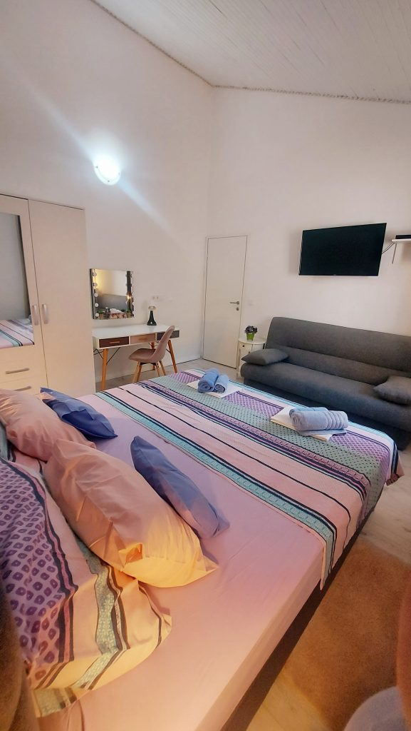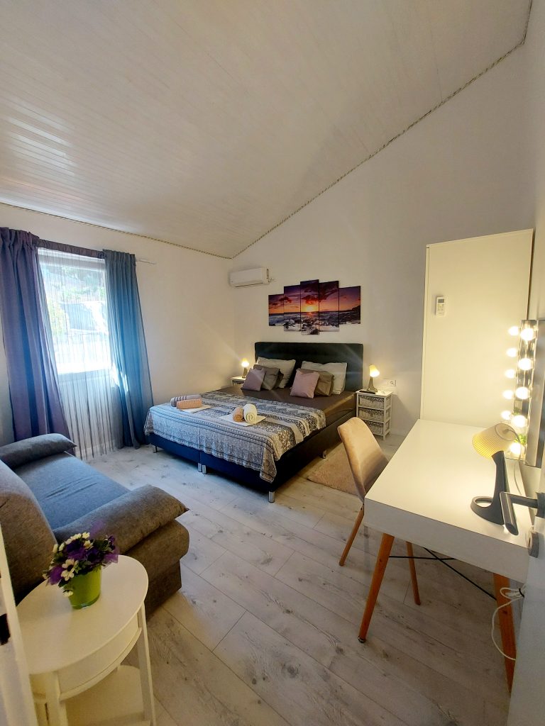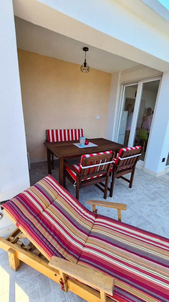 Nahaja se 10 metrov od plaže. Stanovanje ima klimo, wifi, pametno TV in vso opremo kot veliko stanovanje. Ima 2 terasi.