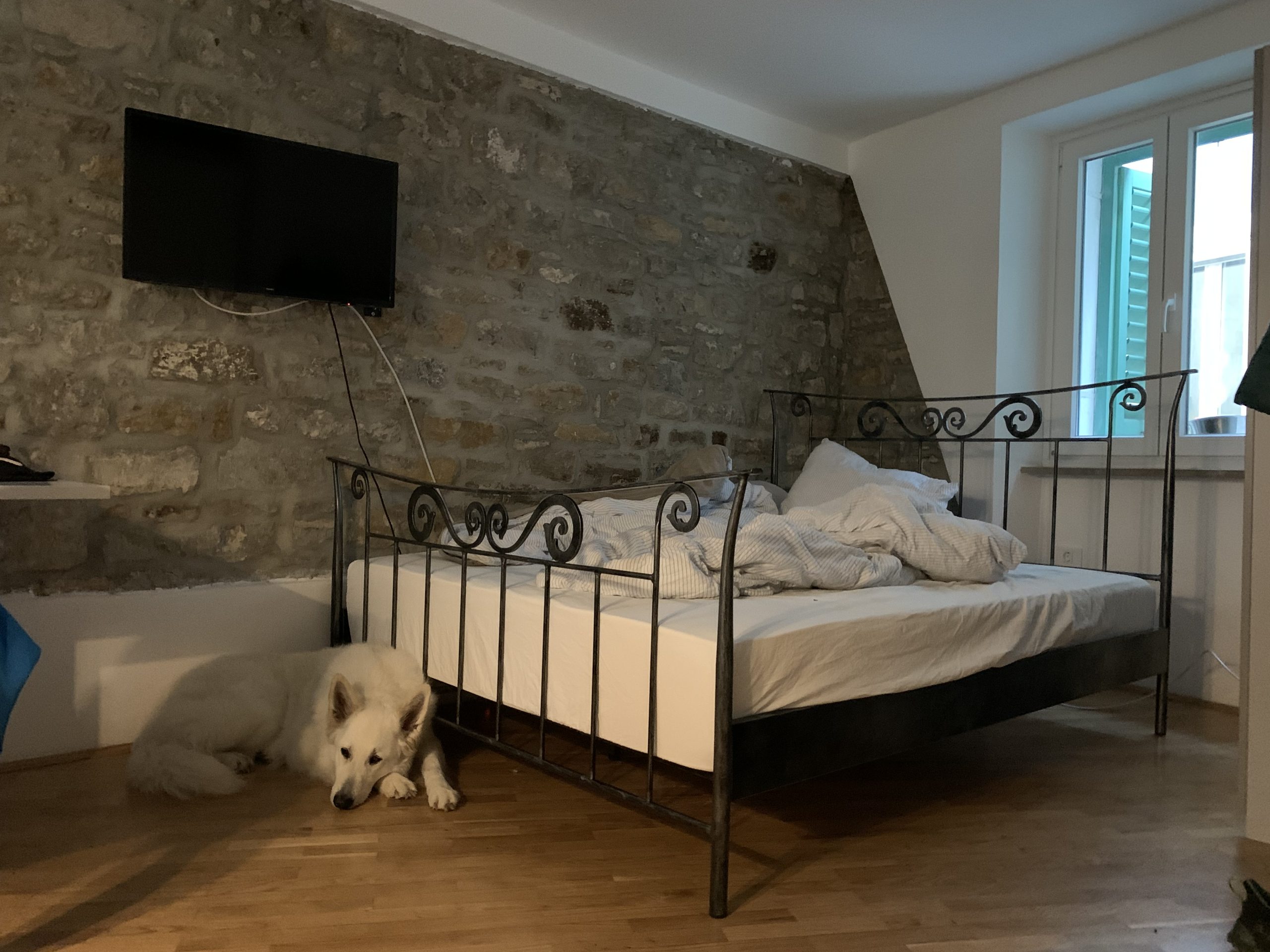 Ob prihodu v Piran, nas je sprejela zelo prijazna lastnica, ki je tudi sama ljubiteljica psov. Zelo sva bila presenečena, ker je bila Arya, kljub svoji velikosti tako dobrodošla. Za nekatere kužke zna mogoče biti problem malo ožje stopnišče, ampak Aryi je z lahkoto uspelo.