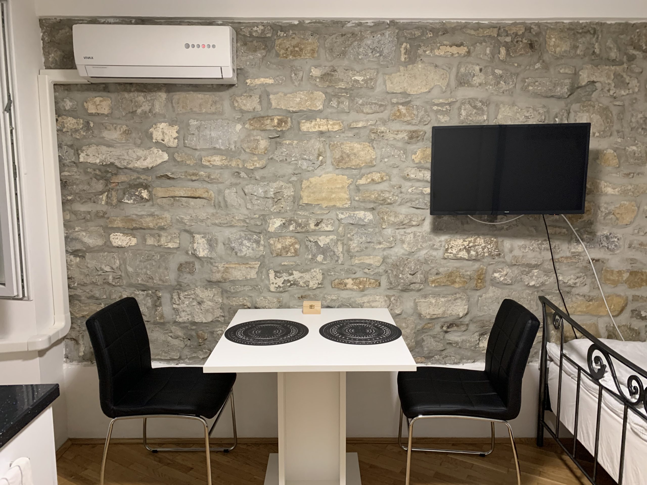 Studio kljub svoji majhnosti vsebuje vse potrebno. Večja postelja je zelo udobna. V kuhinji je vsa oprema, razen pečice, lahko pa jo nadomestite z mikrovalovko. V jedilnem kotu se nahaja tudi Lcd TV in klima. Imate tudi brezplačen WiFi.