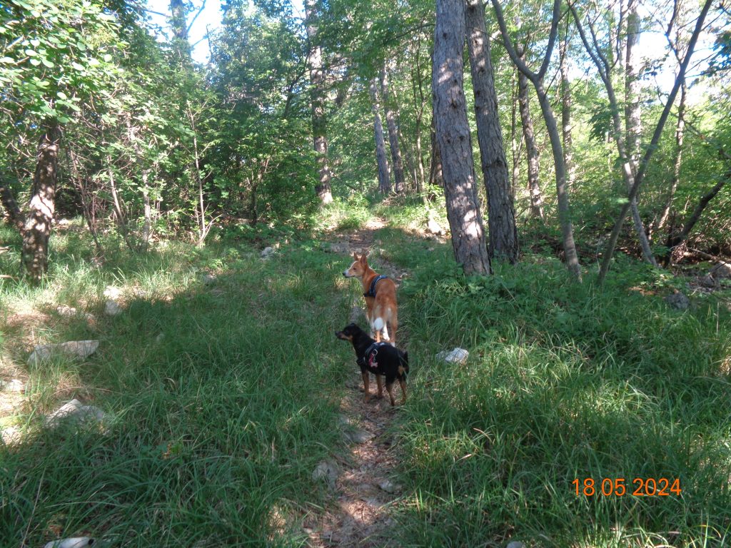 Pot je bila sprva zložna. Hodile smo med drevesi (v gozdu) in po senci.