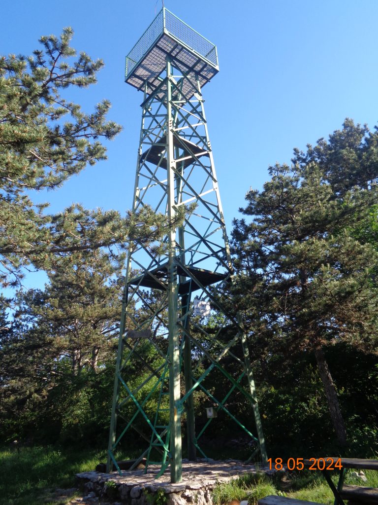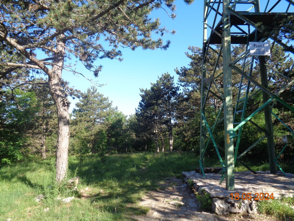 Proti vrhu se je pot še dodatno položila in v nekaj minutah smo bile na vrhu Lačne. Na vrhu je razgledni stolp, na katerega se lahko povzpnemo.