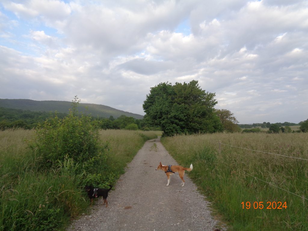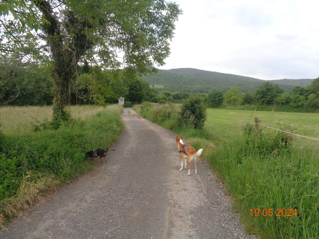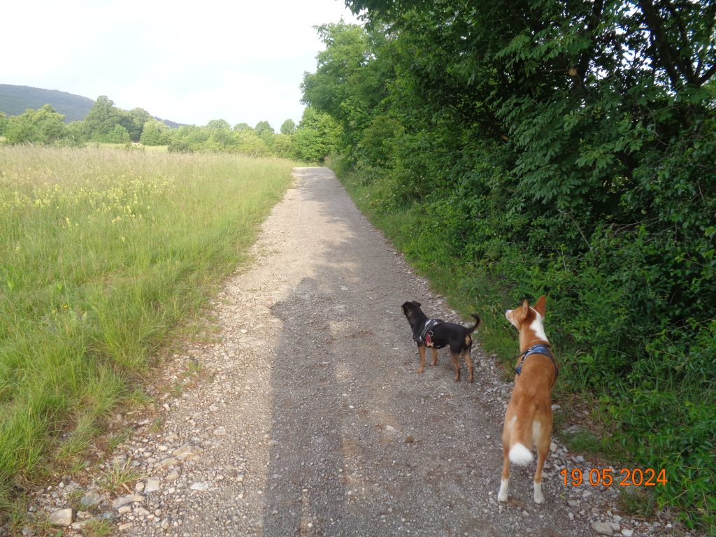 Tu smo nadaljevale desno. Makadamska cesta je prečila številne travnike. Do vznožja gore smo porabile približno 20 minut.
