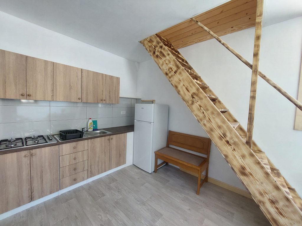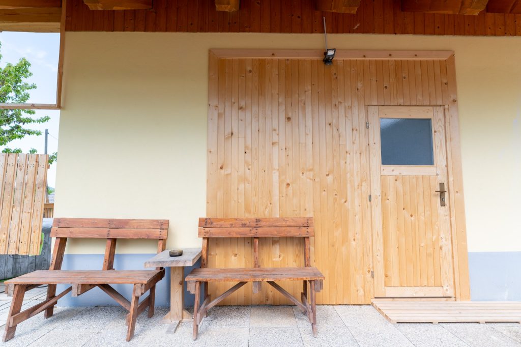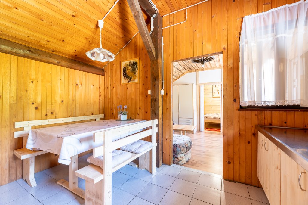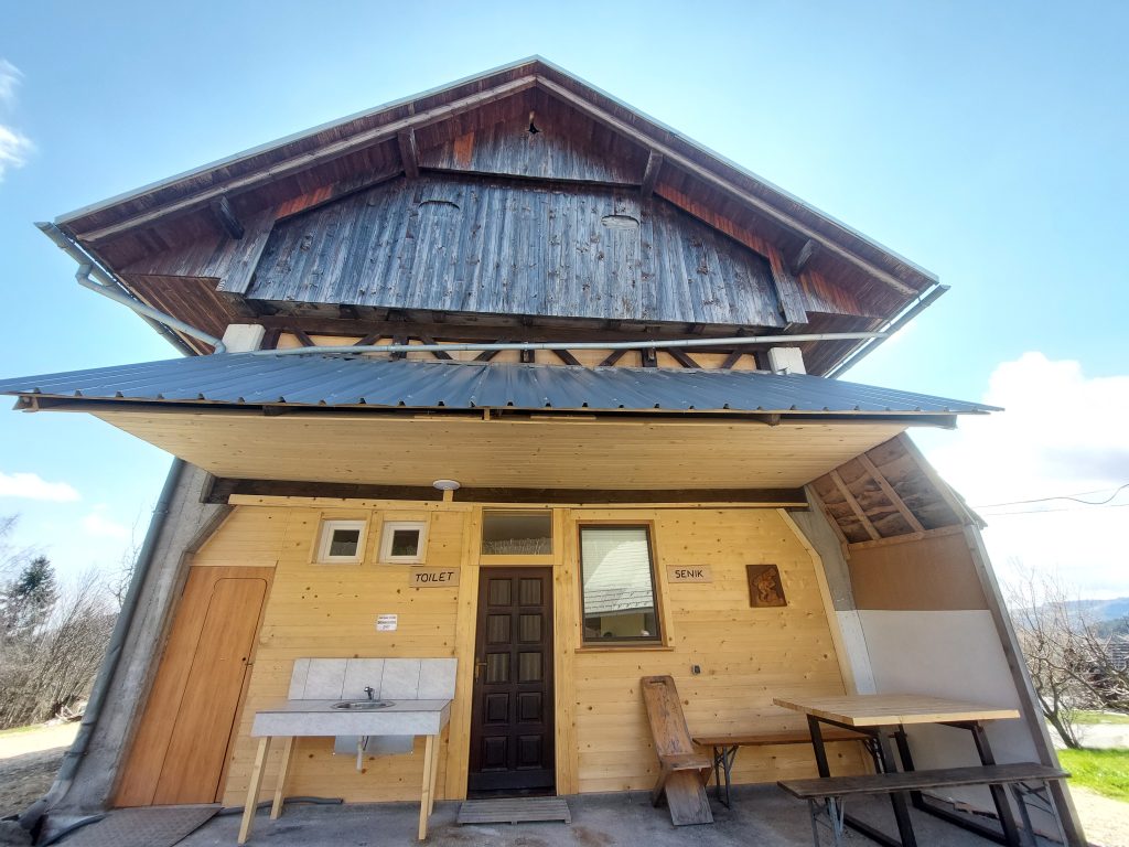 Senik 1 je prijetna zasebna soba, ki sprejme do dve osebi in se nahaja v prvem nadstropju stavbe. Opremljena je z udobno zakonsko posteljo, garderobno omaro in mizo, ki omogoča udobno bivanje in delo. Soba ima tudi svoj balkon, kjer lahko gostje uživajo v svežem zraku in čudovitem razgledu na okolico. V sobi je na voljo tudi hladilnik, kar omogoča osnovno shranjevanje hrane in pijače. Za udobje gostov je poskrbljeno tudi s sistemom gretja z IR paneli, ki zagotavlja prijetno temperaturo v vseh letnih časih. Spodnje nadstropje stavbe ponuja skupno kuhinjo in skupno kopalnico. Kuhinja je opremljena z večjim hladilnikom, kuhalno ploščo, posodo, grelnikom vode in mikrovalovno pečico, kar omogoča pripravo obrokov po lastni izbiri. Pred stavbo je tudi vrtna sedežna garnitura, kjer lahko gostje počijejo in uživajo v svežem zraku, ter možnost uporabe zunanjega žara za pripravo okusnih obrokov na prostem. Gostom je na voljo tudi brezplačna uporaba brezžičnega interneta, prav tako pa je zagotovljeno brezplačno parkirišče, ki se nahaja neposredno ob stavbi.