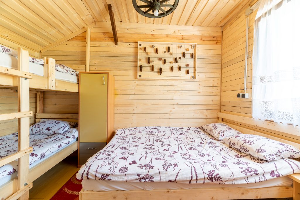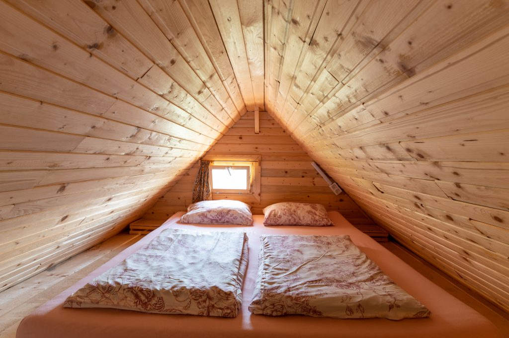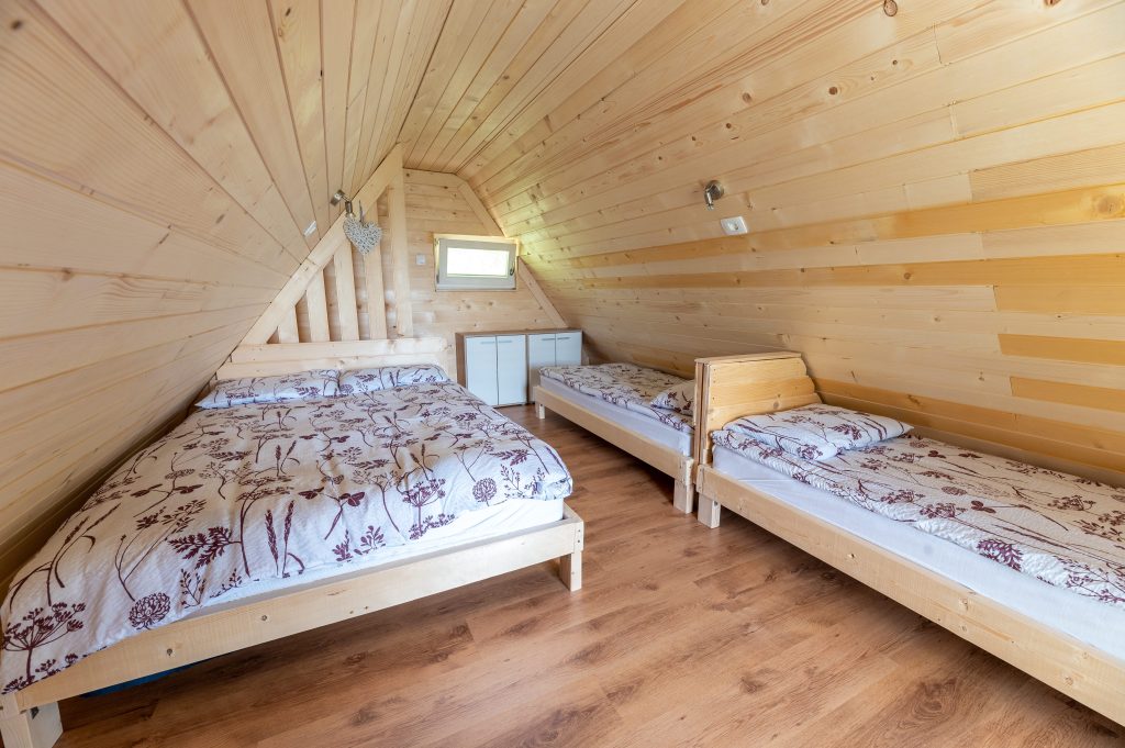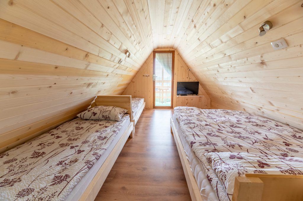 Ljubka glamping hiška Ruby sprejme največ štiri osebe. Nahaja se na gozdni jasi, zato bivanje v hiški predstavlja res čudovito in unikatno doživetje. Za ljubitelje narave nudi idealno izhodišče za športne dogodivščine in smučanje na smučišču Cerkno. V zgornjem nadstropju se nahaja spalnica, kjer so zakonska in dve enojni postelji. Preden zaspite, si lahko ogledate še kak film, saj je v zgornjem prostoru nameščena tudi televizija. Na voljo vam je tudi pokrit balkon, s katerega imate čudovit razgled na okoliške hribe.