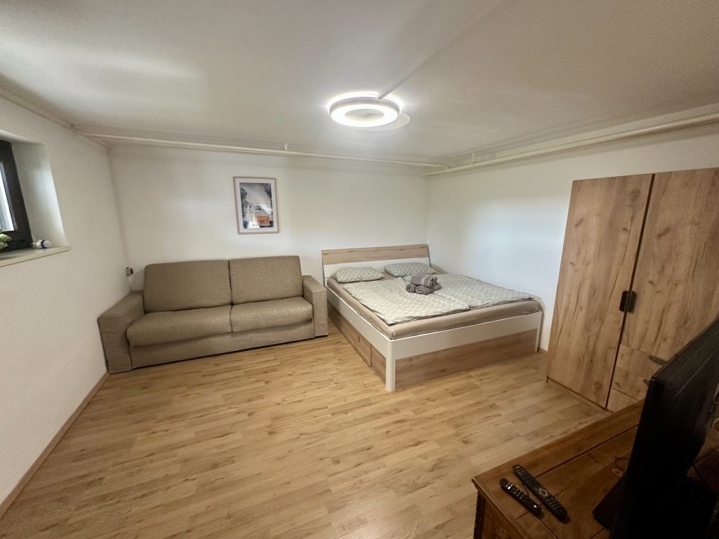 Spodnji apartma je izjemno hladen v poletnih mesecih in lahko noč preživite ob odprtem oknu, saj je izjemen mir, stran od prometa. V njem lahko bivajo 4 osebe, ima pa dodatno tudi pralni stroj in čisto novo kuhinjo.