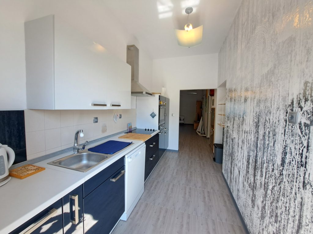 Stanovanje meri 100 m2 in ima visoke stropove (3m), zaradi česar je v njem čutiti svobodo, prostornost. Velikost stanovanja hkrati pomirja in sprošča.