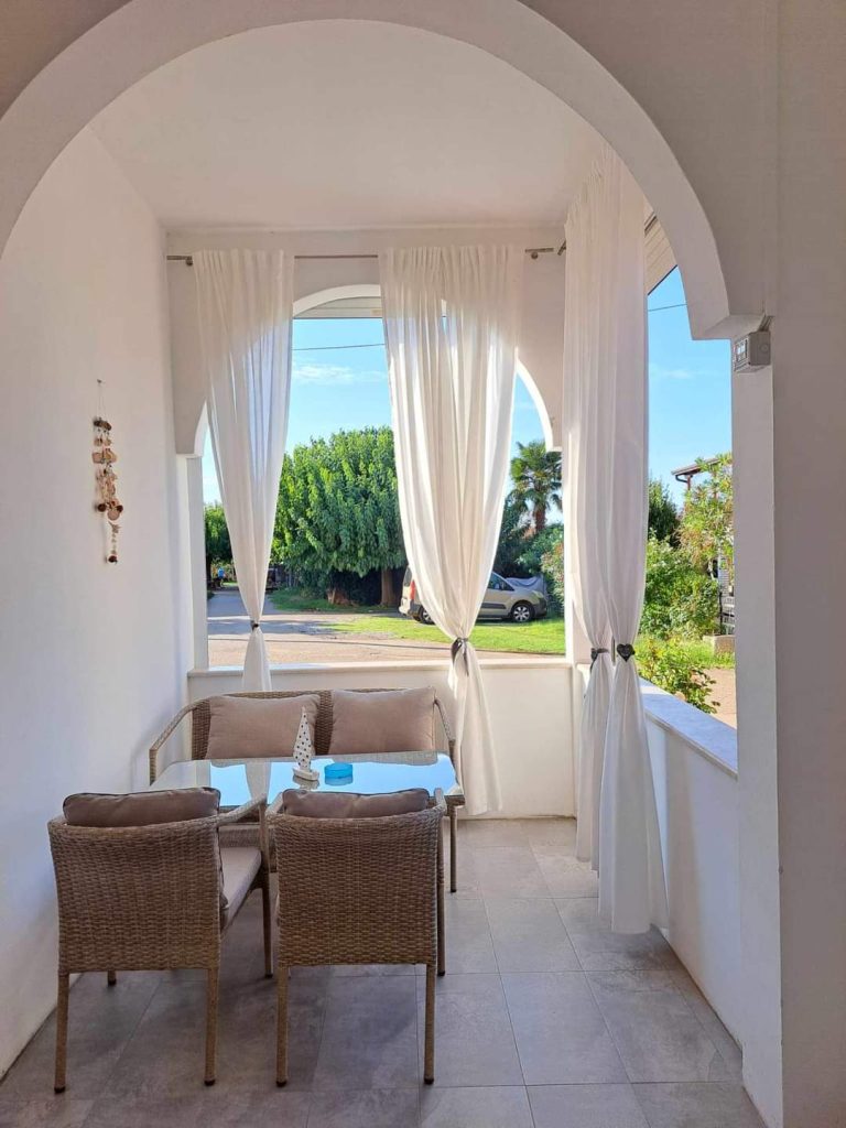 Za hišo je gozdiček in prostran vinograd. Pred hišo pa pridemo po desetih metrih v turistično naselje in avtokamp. Med vinogradi pridete tudi do morja in pasje plaže. Sicer je možno kopanje tudi na divjih plažah, ko ni ljudi.