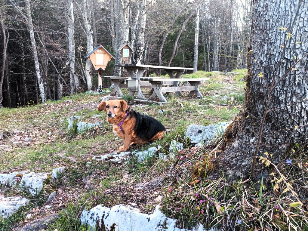 Na vrhu se lahko spočijemo na klopcah. Kar nekaj jih imamo na izbiro. Ob počitku in malici lahko opazujemo, kako v vetru plapola zastava in uživamo v razgledu.