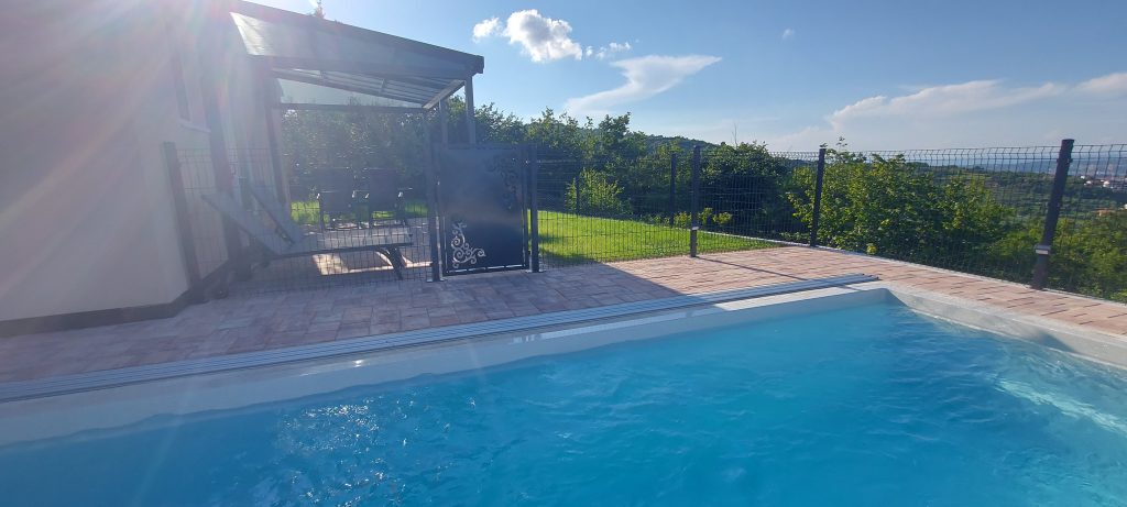 Ima zagrajeno teraso, kjer se pes lahko svobodno giba, vi pa lahko v miru spijete kavico, izven ograde pa morajo biti psi na povodcu. Poleg mobilne hiške je na voljo tudi ogrevan bazen, ki pa je v souporabi z drugimi gosti, zato se pes ne sme kopati v njem.