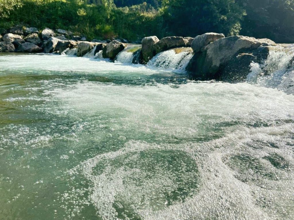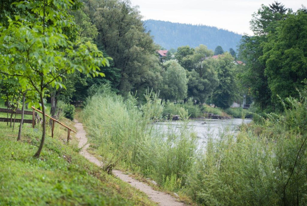 Umeščen je med dvema potočkoma in v enem od potokov, najmlajši najdejo svoj raj v vodi na flosu (splavu).