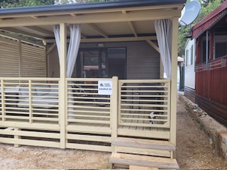 Všeč mi je zunanji del terase z ograjo, da psička (Riva) ni mogla iz območja, saj je nora na vodo, zelo rada namreč plava. Za kužke je potrebno doplačati bivanje. Bili smo zelo zadovoljni v kampu, saj je bilo okolje prijetno, storitve odlične in osebje zelo prijazno.