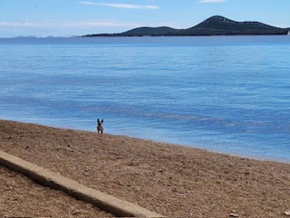 Zelo prijazen kamp za štirinožne tačke je od plaže oddaljen 30m. Na pasji plaži so kamenčki in najde se tudi veliko sence.