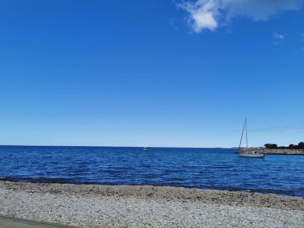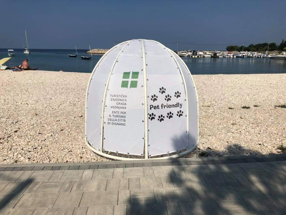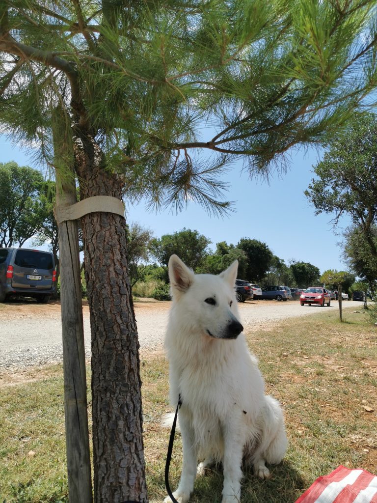 Morje je čisto, na plaži sicer ni veliko sence. Posajeni so manjši borovci in nekaj drugih dreves, pod katere se lahko s svojim kužkom malo skriješ pred soncem.