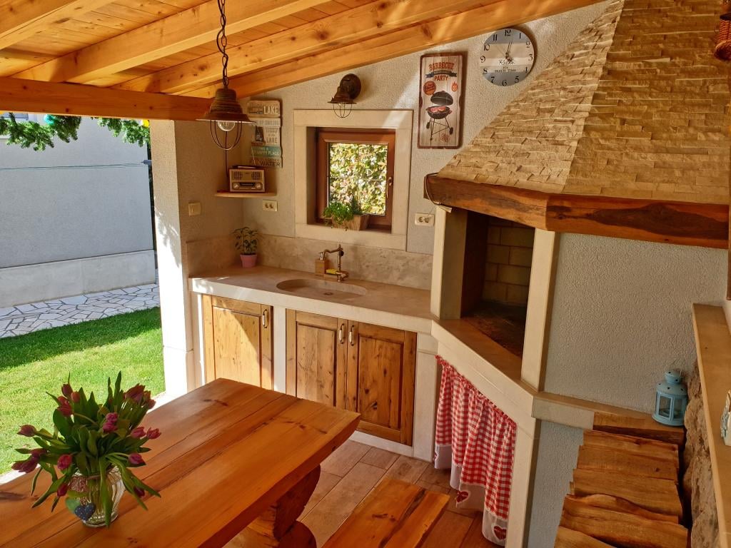 Zagotovljeno je parkirišče na zaprtem dvorišču pred hišo, pod 24-urnim video nadzorom. Na voljo je sezonski bazen v zadnjem delu dvorišča (488×122 cm). Na dvorišču lahko vaš pes uživa ob raziskovanju, medtem ko pripravljate obrok na žaru. Terasa je idealna za sprostitev z vašim psom, kamin pa doda prijetno vzdušje za večere. Na voljo imate hladilnik, indukcijski štedilnik, leseno sedežno garnituro in otroško gugalnico.