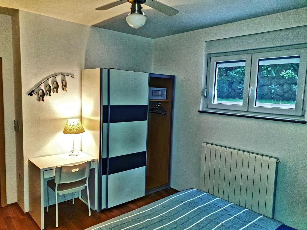 Spalnica ima zakonsko posteljo, omaro, sef, (dodatno zložljivo ležišče, otroška posteljica – na zahtevo in brezplačno) stropni ventilator. V dnevni sobi je kavč, ki se lahko uporablja kot dodatno ležišče, na voljo je stropni ventilator.
