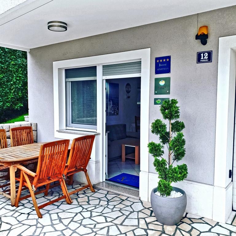 Apartma Kiara se nahaja v mestu Kraljevica, čudovitem obalnem mestu na Hrvaškem ob severnem Jadranskem morju, blizu Reke in ob vstopu v Bakarski zaliv. Kraljevica je znana po svojih srednjeveških gradovih, čudovitih plažah in slikovitih sprehajalnih poteh, kjer boste lahko skupaj s svojim psom uživali v raziskovanju okolice. Vaš pes bo navdušen nad številnimi zelenimi površinami in obalnimi potmi, ki ponujajo obilico priložnosti za skupne avanture. Apartma Kiara je prijazen do hišnih ljubljenčkov, zato lahko brezskrbno pripeljete svojega psa in skupaj ustvarite nepozabne spomine v tem čarobnem mestu.