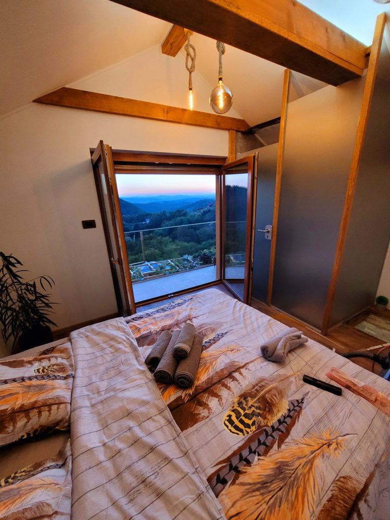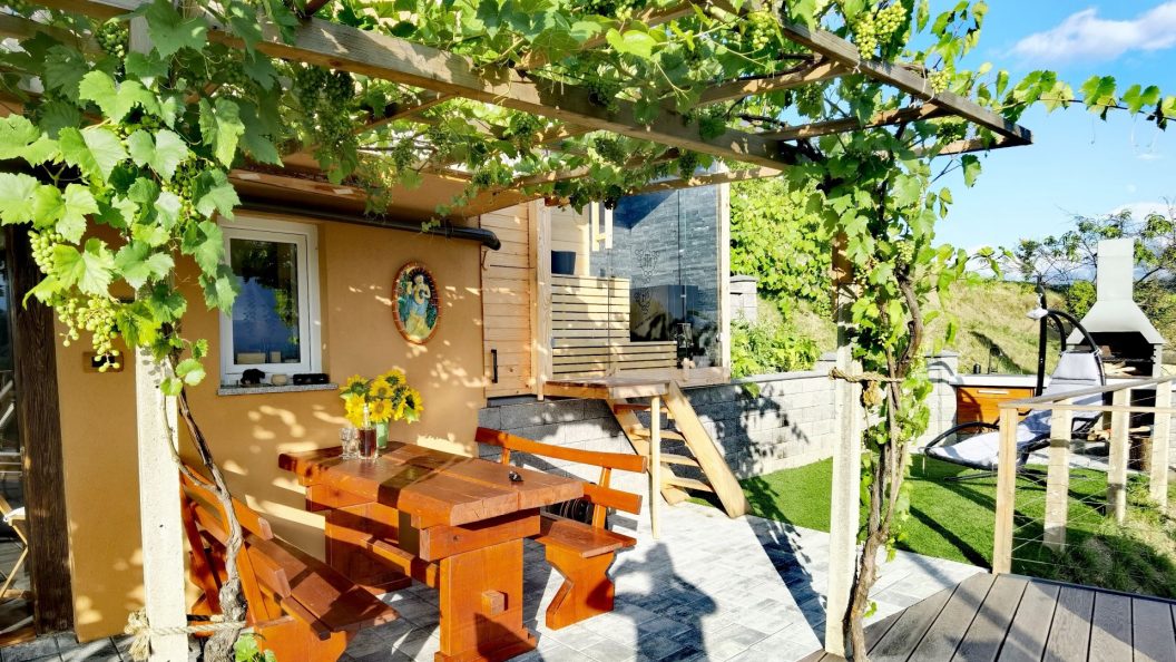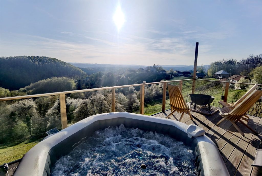 Med dolenjskimi griči, odmaknjenimi od mestnega vrveža, v sožitju z naravo se lahko razvajate tudi v masažnem bazenu s čudovitim razgledom med vinogradi.