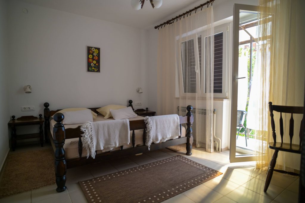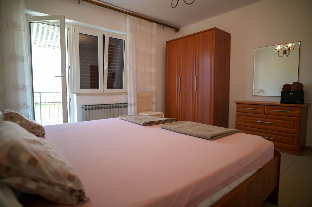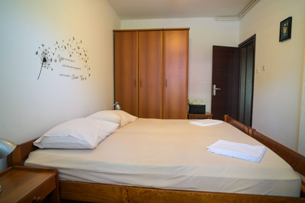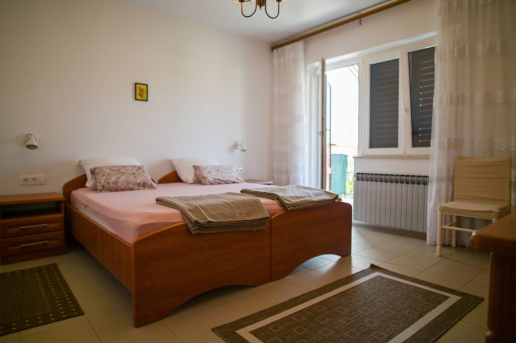 Apartma Helena 2 se nahaja v pritličju in obsega dve spalnici z zakonsko posteljo ter dnevno sobo, kar omogoča namestitev do 4 oseb. Apartma vključuje kuhinjo s pomivalnim strojem, 2 kopalnici (v eni je pralni stroj) ter veliko senčno teraso, kjer bo užival tudi vaš pes. Na voljo sta tudi Wi-Fi in klimatska naprava.