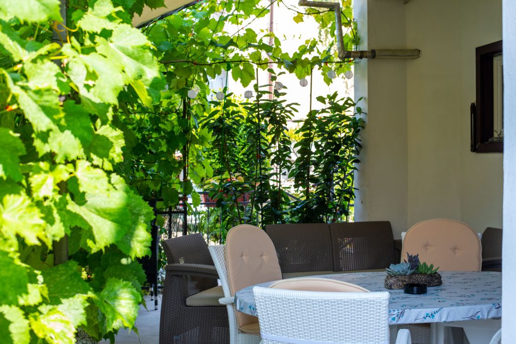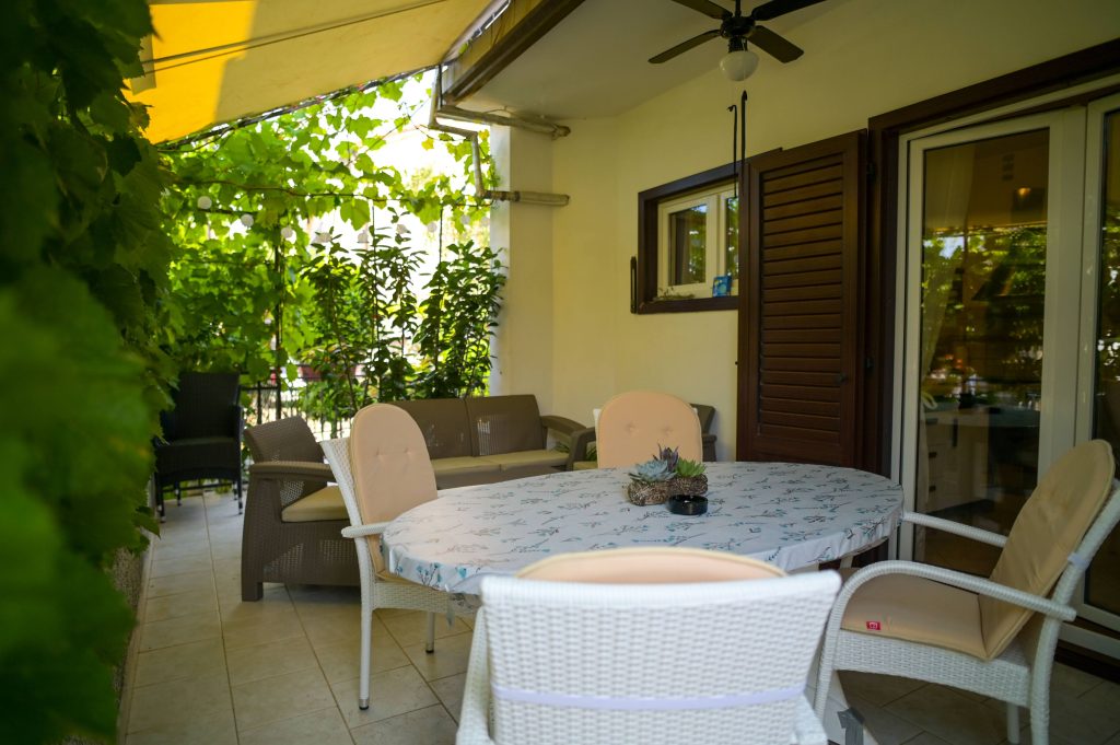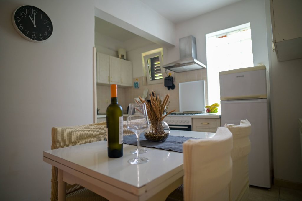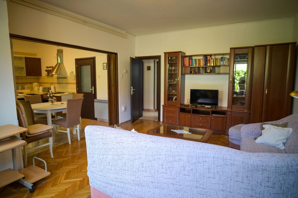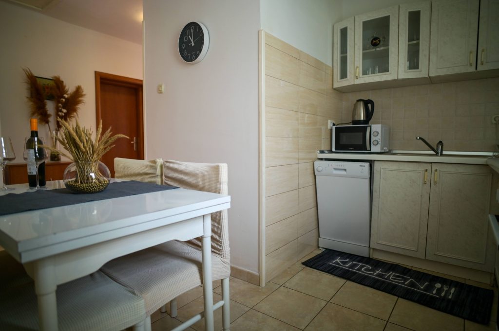 Apartma Helena 2 se nahaja v pritličju in obsega dve spalnici z zakonsko posteljo ter dnevno sobo, kar omogoča namestitev do 4 oseb. Apartma vključuje kuhinjo s pomivalnim strojem, 2 kopalnici (v eni je pralni stroj) ter veliko senčno teraso, kjer bo užival tudi vaš pes. Na voljo sta tudi Wi-Fi in klimatska naprava.