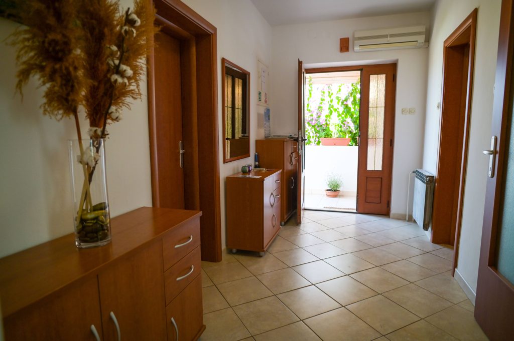 Apartma Helena 1: Namestitev je primerna za 4+1 osebe in vključuje 2 dvoposteljni sobi, dnevno sobo, kuhinjo s pomivalnim strojem, kopalnico s pralnim strojem, stranišče, teraso, klimatsko napravo/centralno ogrevanje ter Wi-Fi.