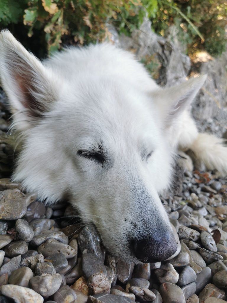 Dostop do pasje plaže je po nekaj stopnicah. Na plaži sicer ni vode in tušev, je pa na voljo koš za odpadke, vhod pa je zagrajen in zaprt, tako da so psi lahko večinoma spuščeni. Naš kuža se je tukaj počutil prav super in sproščeno. Plažo pogosto obiskujejo tudi domačini s psi, ki so res zelo prijazni.