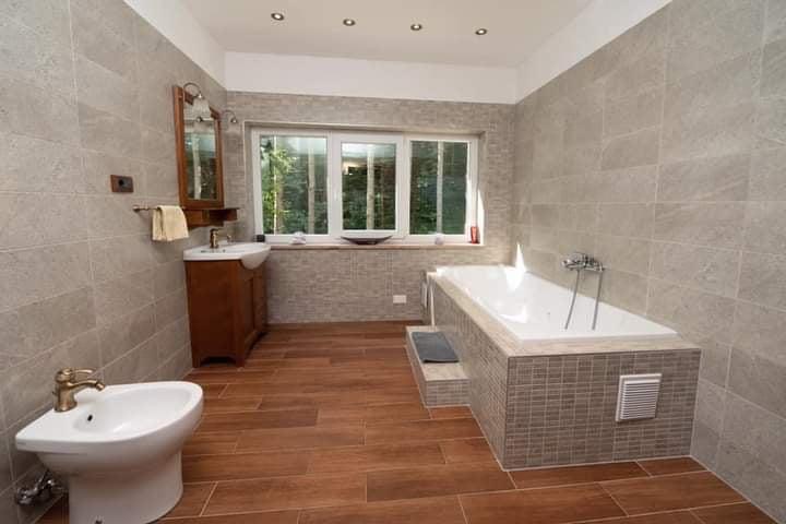 Oba sta klimatizirana, vsak ima pečico, pomivalni stroj, sušilec las, hladilnik, wifi povezavo. Zunaj je plinski žar in kurišče na drva, kjer se lahko tudi peče.