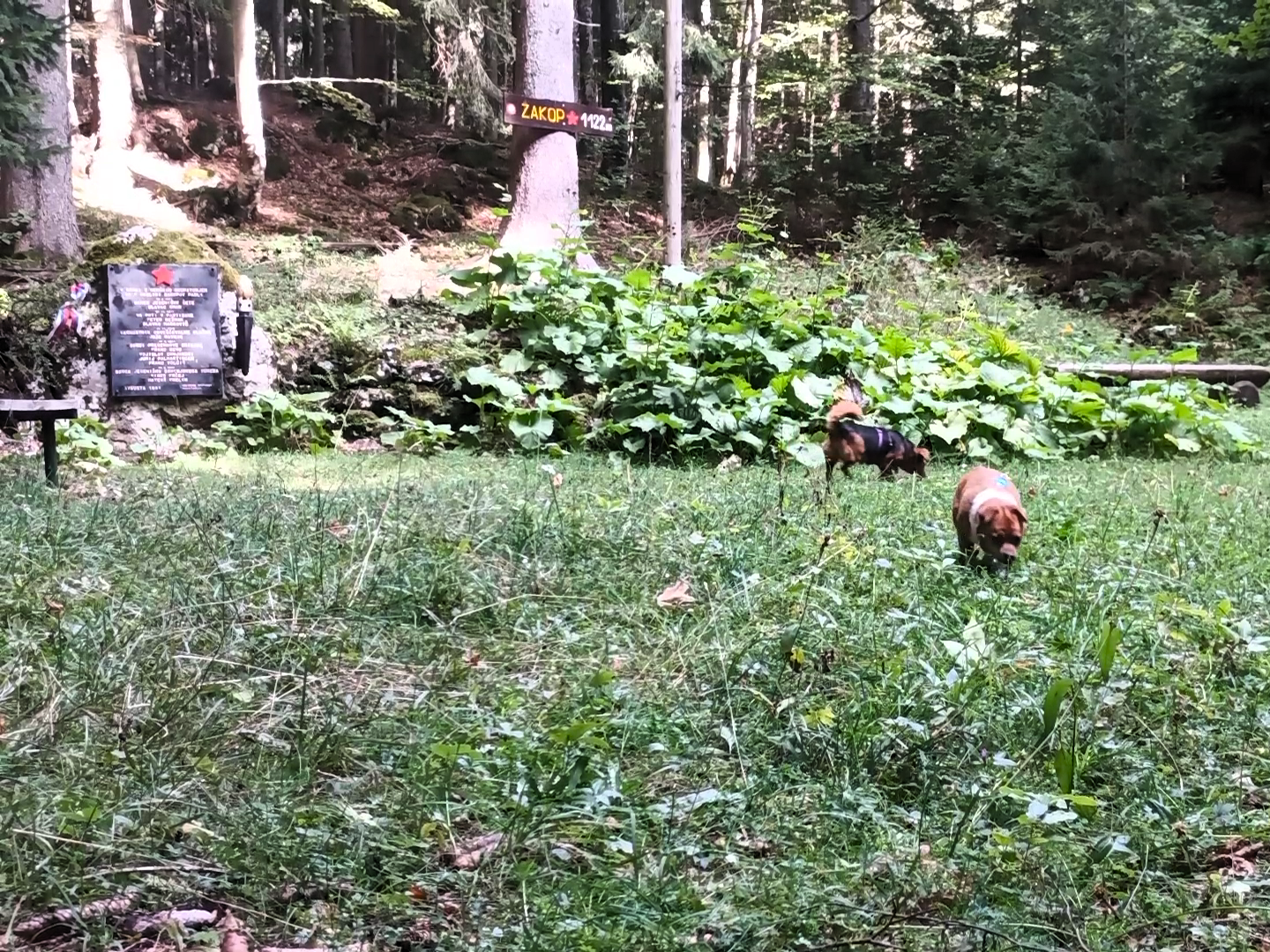 Čez nekaj časa prispemo na Zakop, kjer najdemo klopce za počitek in spomenik padlim borcem.