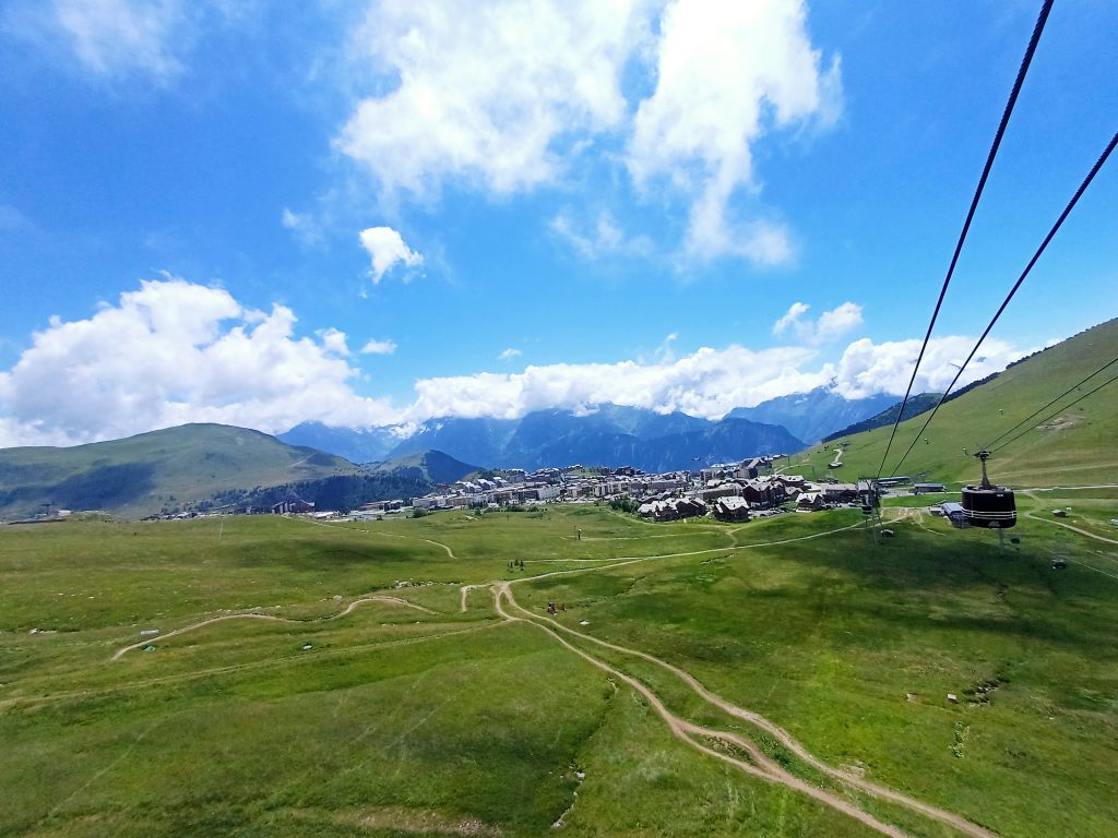 2. dan: Alpe d’Huez je bil naš prvi cilj. Pot nas je vodila mimo številnih kolesarjev, zato je bila potrebna večja pazljivost. Uživali smo v pohodniških poteh in se zapeljali z gondolo, pri čemer je naš kuža Mars lahko šel brez nagobčnika. Za 10 mesecev starega kužka, je vožnjo odlično prenesel, nazaj grede je vstopil, kot da to počne vsak dan. Seveda smo bili zelo ponosni ☺ Skupni strošek vožnje je bil 24 EUR. Ta kraj ponuja toliko možnosti, da bi tam lahko preživeli ves dopust.