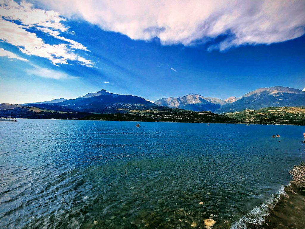8. dan smo našli kamp Camping Municipal Le Grand Large ob jezeru Serre de Poncon. Kamp je bil že večji, ampak plaže so bile pravzaprav prazne. Opazili smo, da dejansko ljudje čez dan hodijo športat in ne poležavajo na plažah – celotno območje je prepredeno s pohodniškimi in kolesarskimi potmi, veliko jih tudi jadra. Ugodna klima omogoča, da si lahko tudi čez dan aktiven. Tam smo ostali 4 noči.