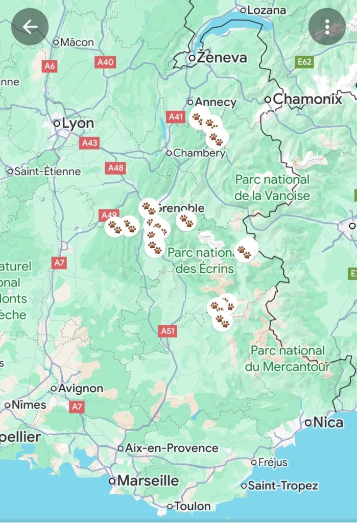 - psi so povsod dobrodošli, z Marsom smo šli lahko tudi na gondolo, v jame, restavracije, plaže,… ena in edina stvar, kamor ni smel, je bil grajski vrt v Vizille