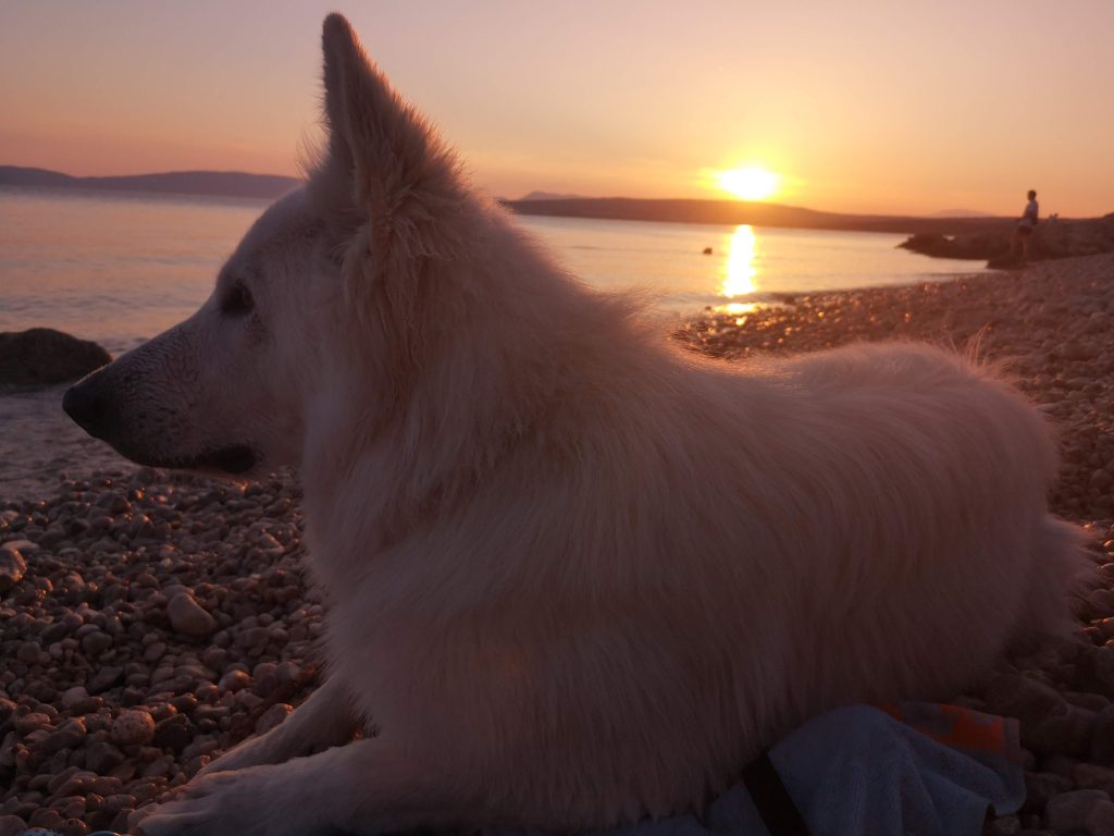Morje je zelo čisto in zvečer je krasen sončni zahod. Na pasji plaži so koši za iztrebke. Tušev in vode ni.