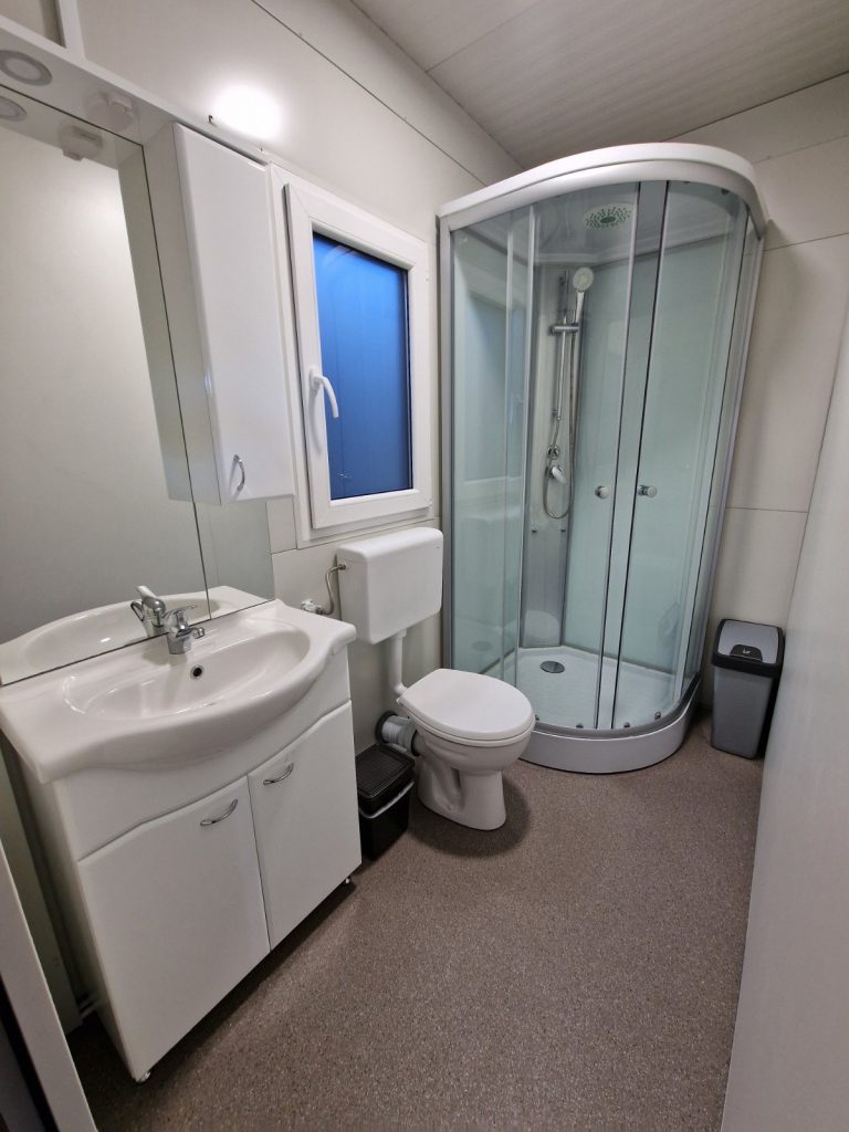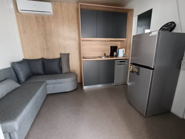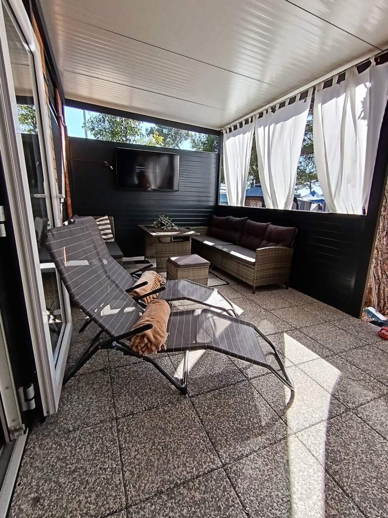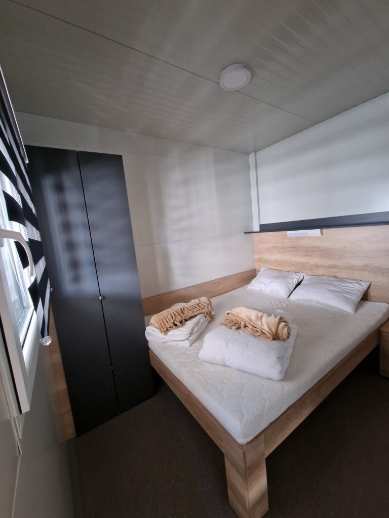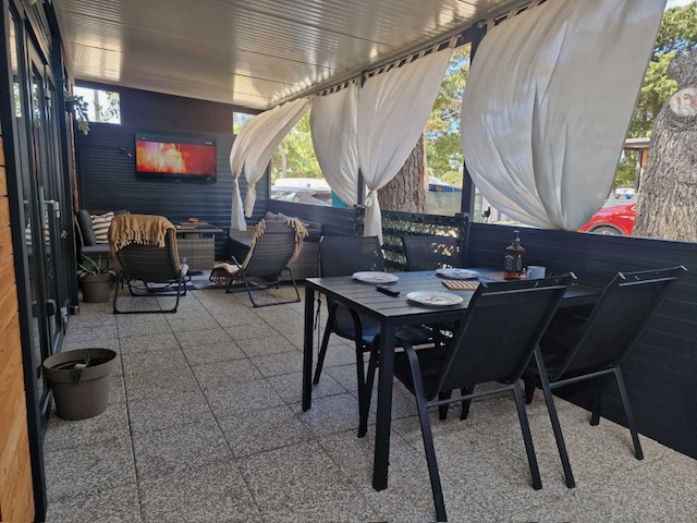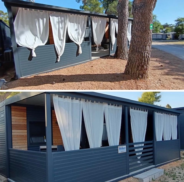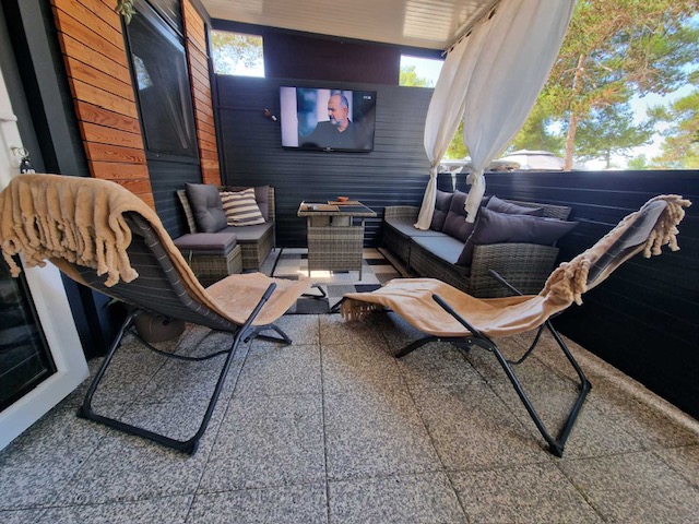 V kampu oddajo mobilno hiško 4+1, ki je oddaljena 1 minuto od peščene plaže. V bližini je otroško igrišče, trgovine, restavracije, pekarne, kavarne, lekarna in pošta.